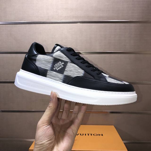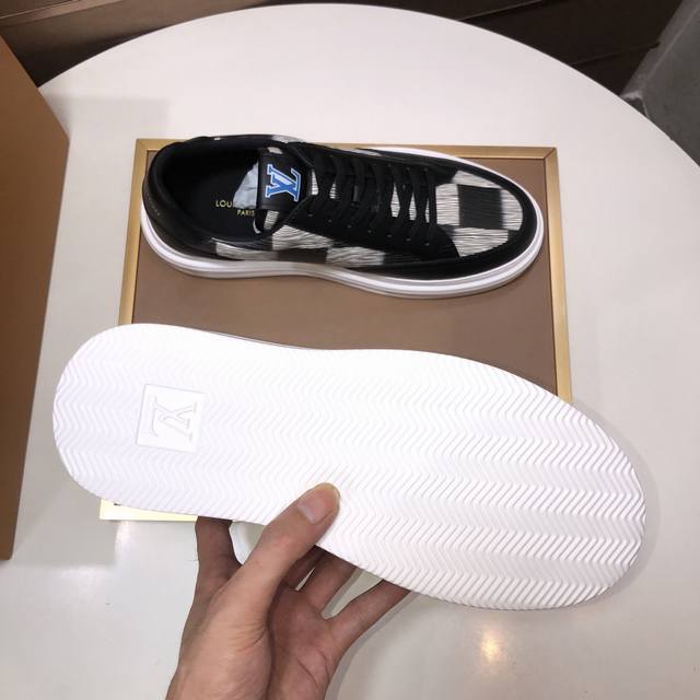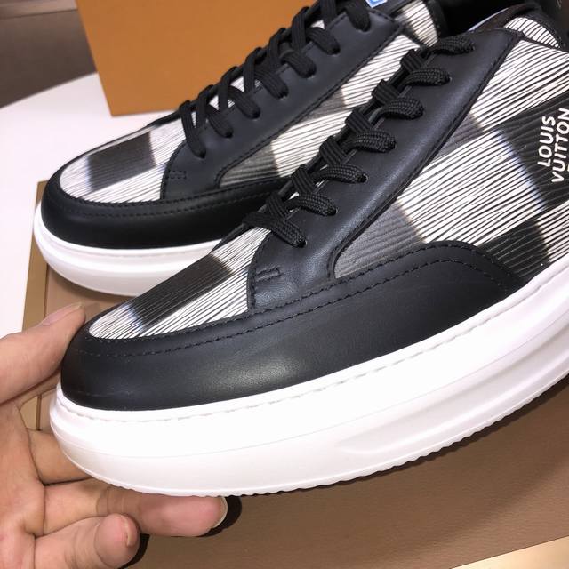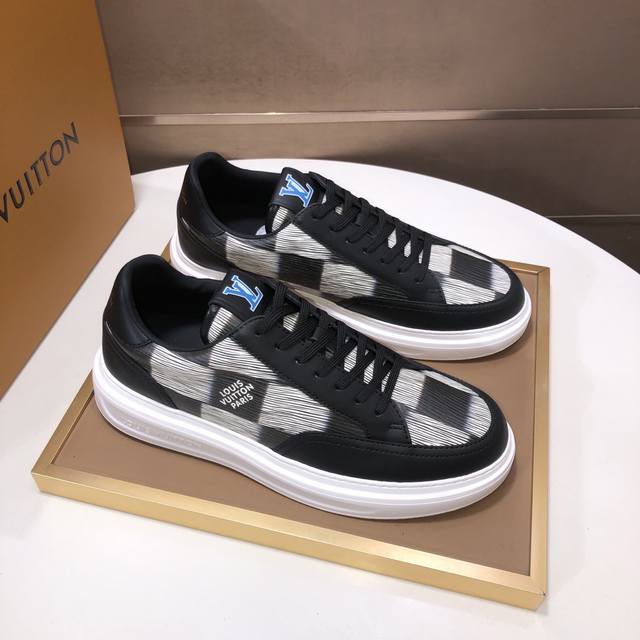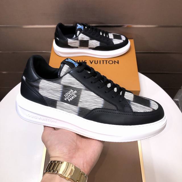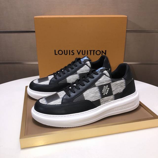 Factory direct wholesale, original development, quality shipped directly. Welcome to compare. The LV sneaker series brings the relaxed silhouette of the ready-to-wear collection to the Spring/Summer menswear runway with a striking debut. The cowhide leather upper is combined with rugged fabric laces, accented with colorful beads highlighting classic brand elements. The LV lettering is on the tongue, and the Monogram floral pattern adorns the outsole. Made from top-grain cowhide, the mixed materials feature a chunky lace-up design, Monogram print mesh lining, and cotton insole, ensuring ultimate comfort. A timeless classic, superior quality, a worthwhile purchase! Sizes: Men's 38-45. Size 45 is custom-made and non-refundable.