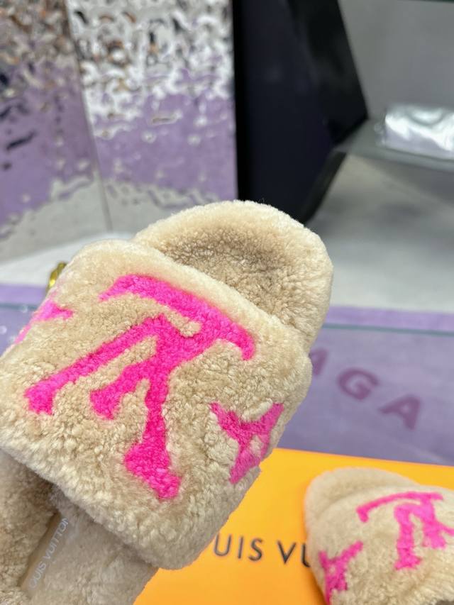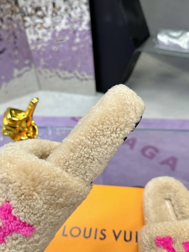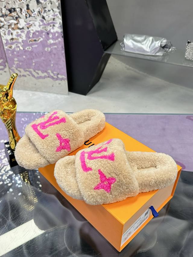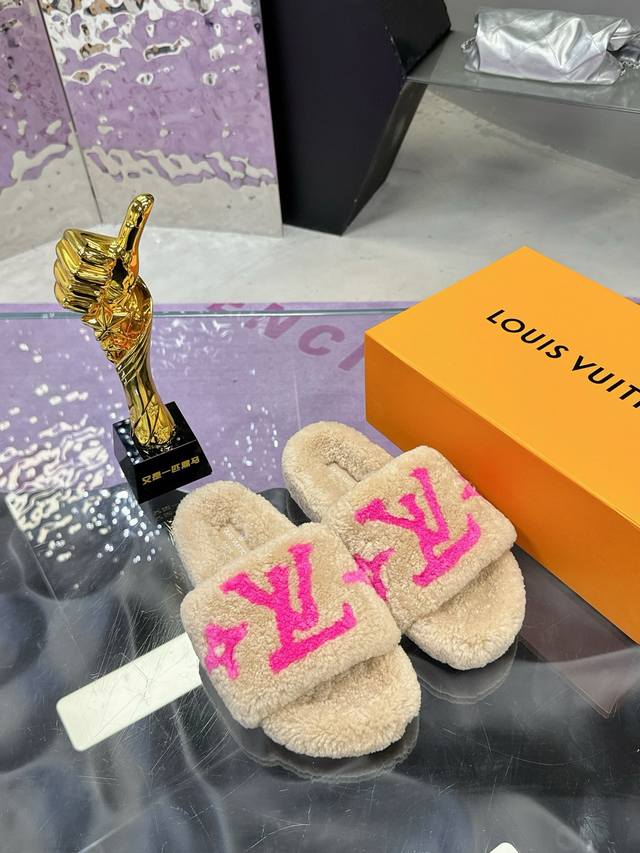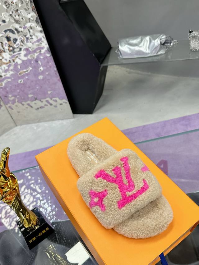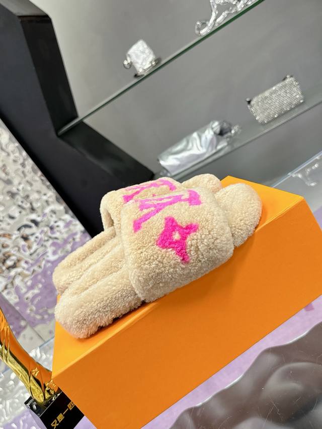 Factory price: 100% genuine wool, the highest-end version of the latest Loui Vuitt fashion slippers. Exclusive, original, custom-made wool slippers. A favorite of European and American celebrities, stars, and influencers. Stylish yet understated, simple and versatile. Natural rubber, non-slip and wear-resistant sole. Fabric/footpads: Grade A lambswool. Genuine leather footpads with brand logo. 1:1 molded outsole. Standard sizes: 35-40, 41, custom-made.