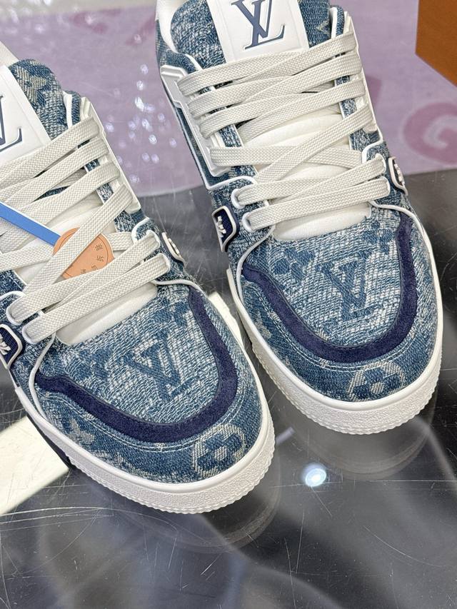 Factory Price: 2025 Latest Color Available! Louis Vuitton Trainer Series Couple Casual Sneakers/Skateboard Shoes. Original purchase and development. This Louis Vuitton Trainer sneaker features a suede cowhide upper with an embossed Damier pattern, inspired by retro basketball shoes. Multiple logos highlight the brand's style. Removable Monogram floral tag and #54 logo adorn the laces and heel. Comes with exquisite boutique packaging. Material: Original custom imported materials. Lining: Original custom breathable mesh. Outsole: Original molded anti-slip TPU combination outsole. Sole thickness: 3cm. Size: Women's 35-40, Men's 38-46.