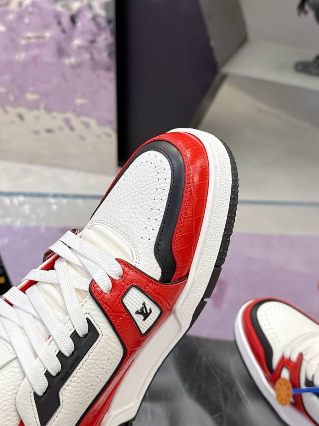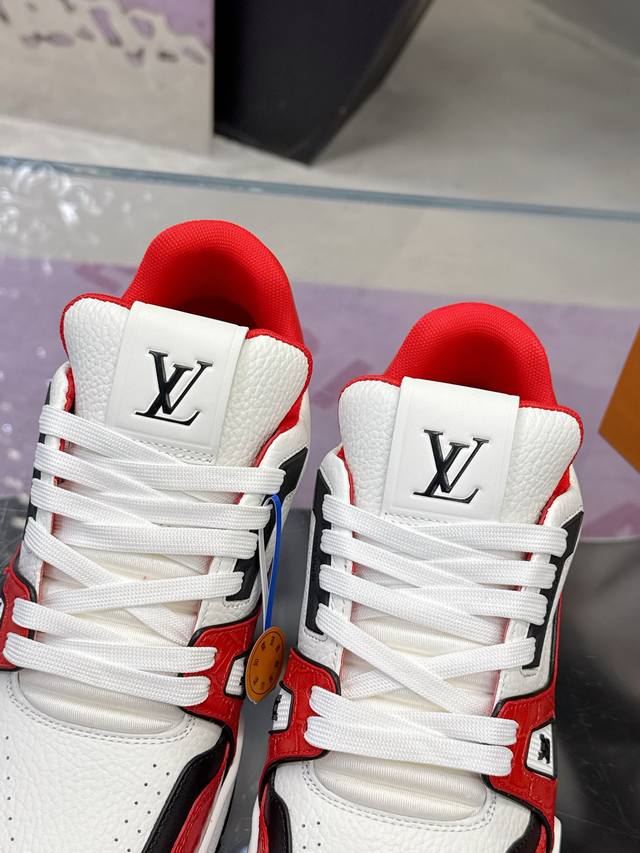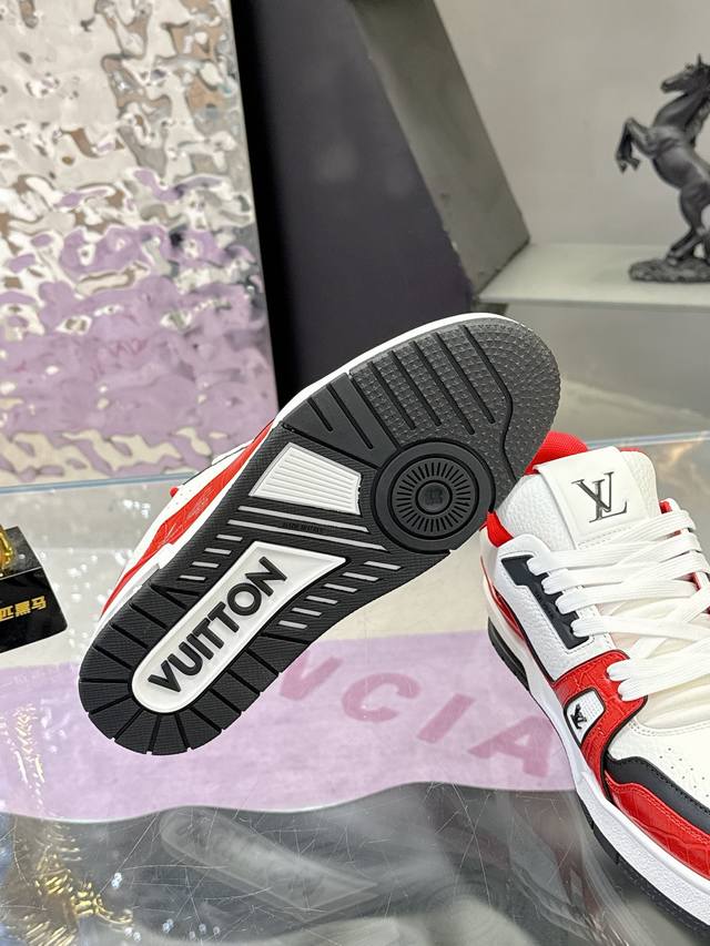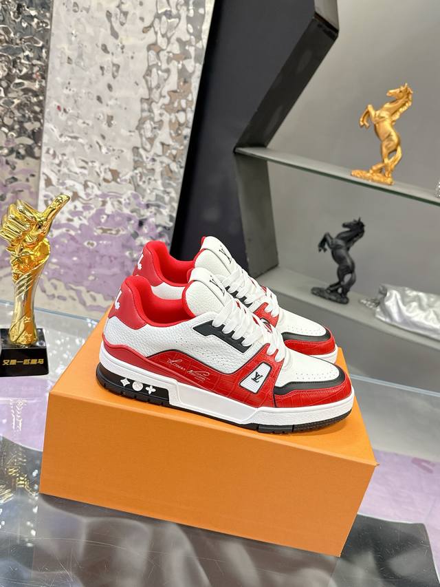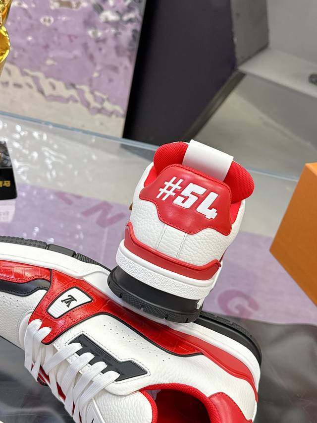 Factory Price: 2025 Latest Color Available! Louis Vuitton Trainer Series Couple Casual Sneakers/Skateboard Shoes. Original purchase and development. This Louis Vuitton Trainer sneaker features a suede cowhide upper with an embossed Damier pattern, inspired by retro basketball shoes. Multiple logos highlight the brand's style. Removable Monogram floral tag and #54 logo adorn the laces and heel. Comes with exquisite boutique packaging. Material: Original custom imported materials. Lining: Original custom breathable mesh. Outsole: Original molded anti-slip TPU combination outsole. Sole thickness: 3cm. Size: Women's 35-40, Men's 38-46.