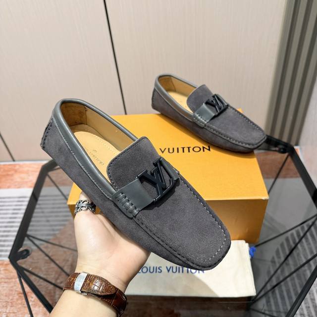 Factory Price: Exclusive new style of LV calfskin loafers. The upper is made of top-quality imported calfskin with a delicate, luxurious feel, tailor-made for sophisticated men, creating a noble aura. Fine, flowing lines and cowhide lining. Sizes: 38-44, 45. Custom orders accepted. Outdoor driving shoes for experienced drivers.
