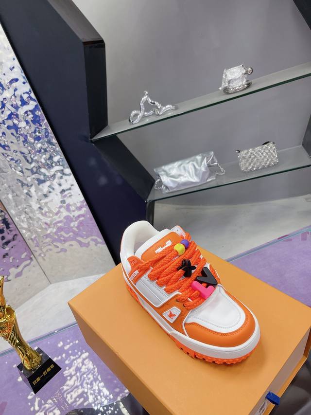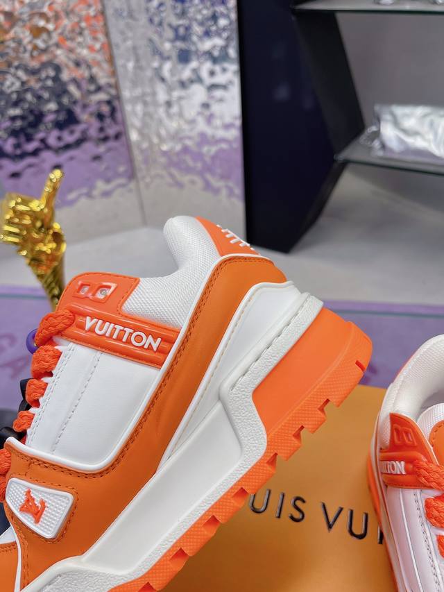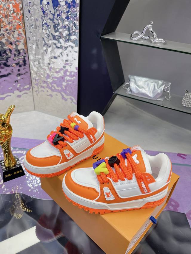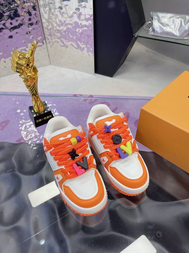 Factory Price: High-quality LV chubby couple's shoes, compare prices from multiple vendors. This version is currently only available as the highest-quality replica of the original, with all details and packaging identical to the original. The latest upgraded version of the LV trainer chubby shoe is identical to the original, exclusively molded, and top-tier in the market. Welcome to compare! The outsole features large star-shaped particles, unlike the thin small stars found in the market. The buttons are also top-quality, taking a month to mold! Every button is smooth and not rough, with a crystal-clear texture! The shoe waist features an elastic band for better ankle support and increased comfort, differentiating it from other market products. The midsole has a unique interplay of solid and void printing to avoid being easily mistaken for a fake! Sizes: Women's 35-40, Men's 39-45.