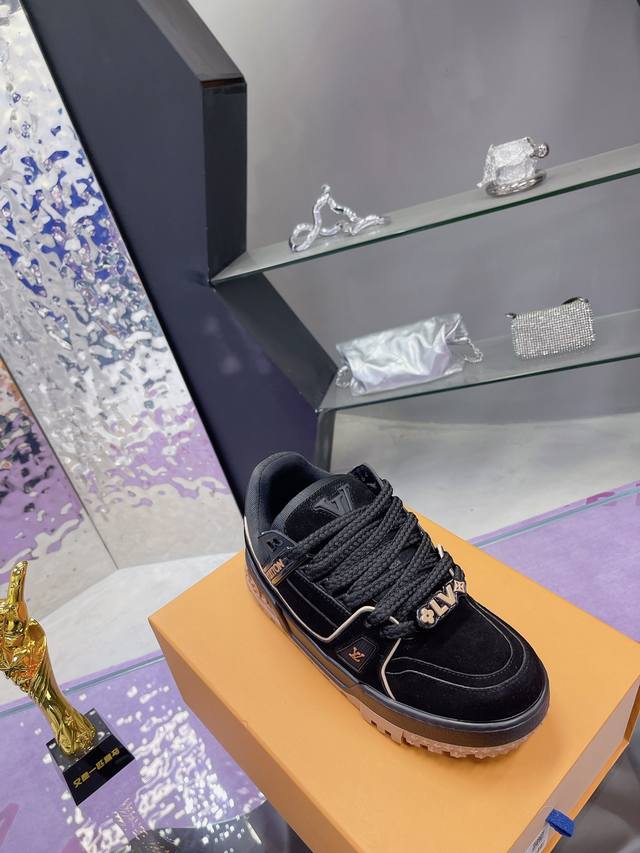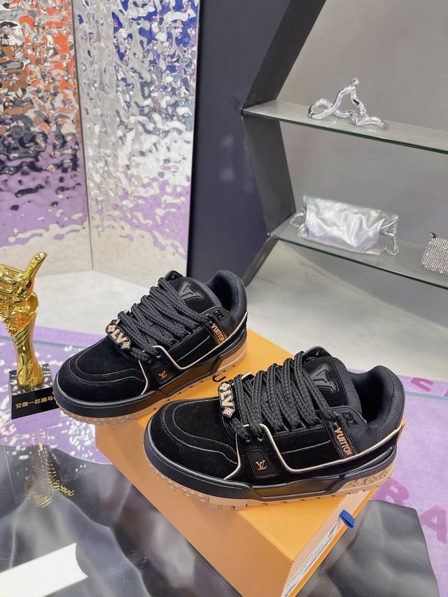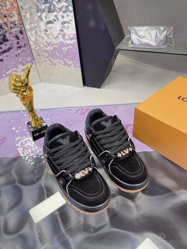 LV Fat Couple Style - Compare prices from multiple vendors. This version is currently only available as the highest-quality replica of the original, with all details and packaging identical to the original. The latest upgraded version of the LV Trainer Little Fat Couple Style is identical to the original, exclusively molded, and top-tier in the market. Welcome to compare! The outsole features large star-shaped particles, unlike the thin small stars found in the market. The buttons are also top-quality, taking a month to mold! Every button is smooth and not rough, with a crystal-clear texture! The shoe waist features an elastic band for better ankle support and increased comfort, differentiating it from market products. The midsole has a unique interplay of solid and void printing to avoid being easily mistaken for a fake! Sizes: Women's 35-40, Men's 39-45.