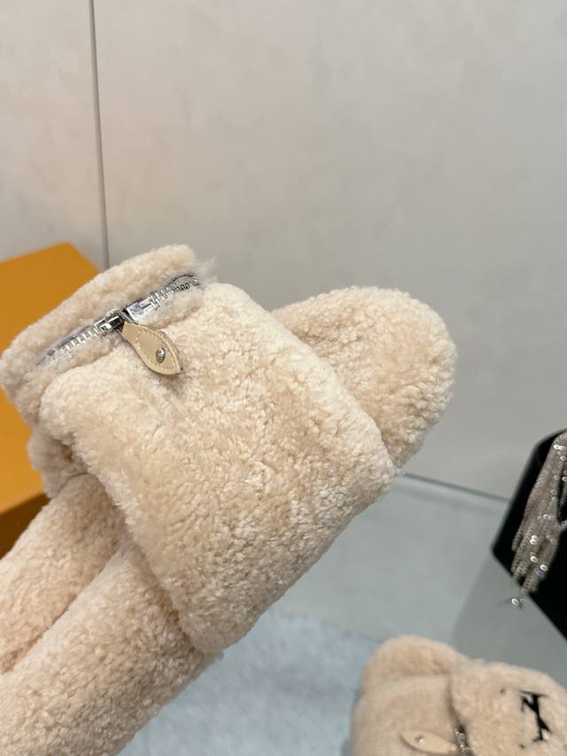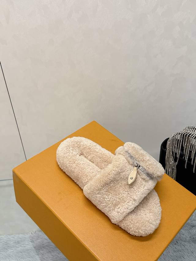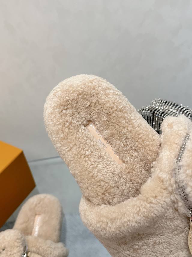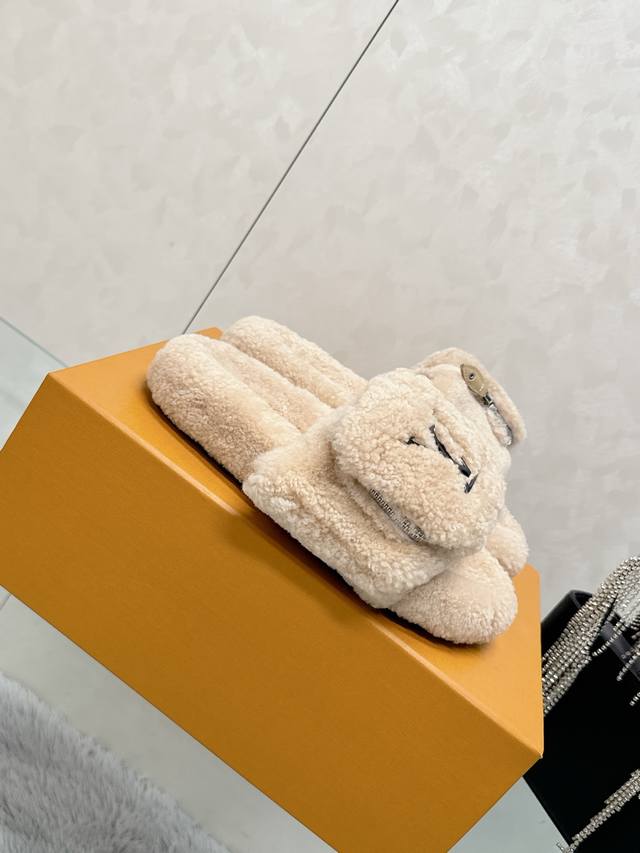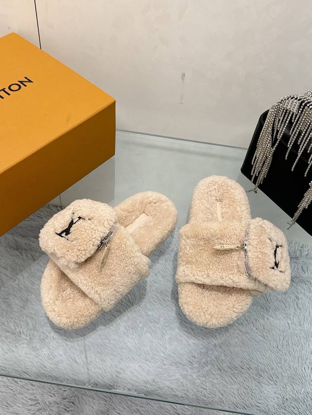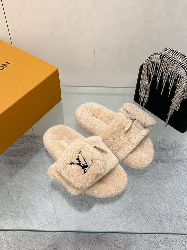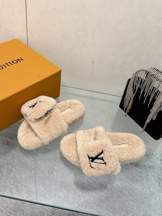 Factory Price: Louis Vuitton 2025 New Wool Slippers - Soft and Fine Wool, Top Quality Pure Fur Straight Hair! Super warm, wearing them feels like walking on clouds! Classic LV monogram decoration, exquisite and high-end! This elevates the value of these slippers! The sole is an original molded EVA foam non-slip outsole, very comfortable and non-slip, and the sole has a certain thickness for excellent comfort! Upper: Original imported wool with epoxy logo pocket. Lining: Original imported wool. Insole: Original imported wool. Outsole: Original molded foam sole. Packaging: Original complete drawer box. Sizes: 35-40. Sizes 40, 41, and 42 are custom-made and non-refundable.
