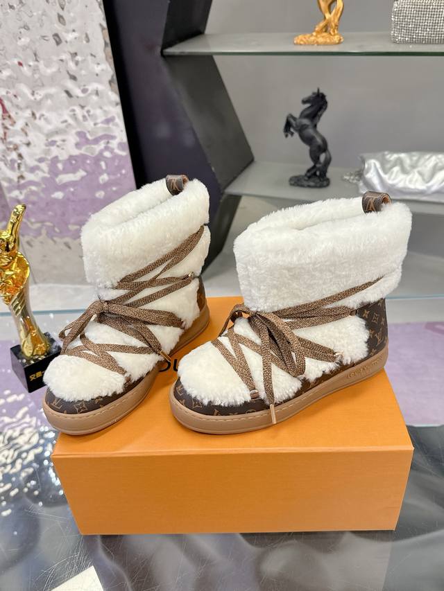 Factory Price: Louis Vuitton Autumn/Winter Newest Snow Boots DDD Many celebrities and influencers are raving about these genuine wool uppers that are waterproof, windproof, and warm DDD The wool lining is comfortable and breathable. It's the perfect season now, so shopaholics should stock up! In winter, when you're running and jumping around every day, the most important thing is that the sole is lightweight! DDD Super lightweight, maximum comfort, truly a walking-on-clouds feel, and proven quality. You don't need many choices when buying shoes, really! Just aim for the highest cost-performance ratio DDD One pair like this is enough for winter snow DDD Outsole: Cold-resistant PU and rubber combination non-slip outsole DDD Sizes: 35-40 DDD