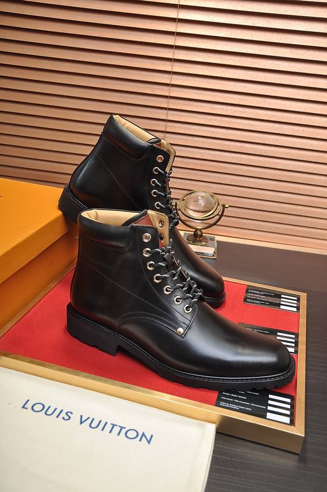 Factory Price Louis Vuitton Original High-Top Shoes, Super Sale, New Style, Leather Lining, Top-Tier Version, Classic LV High-Top Shoes! Made with imported original cowhide lining and original durable rubber outsole! High-quality product! Sizes 38-45. Size 45 is custom-made and non-refundable.
