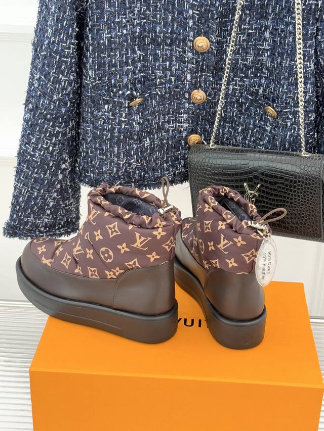 Factory Price DDD L*V Louis Vuitton Classic Autumn/Winter Pillow Down Snow Boots DDD Are you still wearing bulky snow boots? DDD Why not try these super leg-lengthening and slimming down boots? DDD A completely new interpretation of the down concept, with a bread-like texture DDD The upper is made of nylon material with waterproof and windproof functions DDD The inner lining is filled with down and features a Monogram pattern DDD Let your feet embrace warmth in the cold winter DDD Custom original foam anti-slip outsole with ultra-lightweight design DDD Weighing 580 grams, there is no feeling of weight on your feet DDD Size: 35-39 40 41 42 Custom DDD