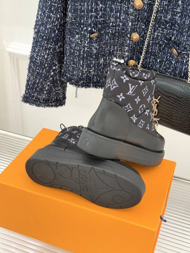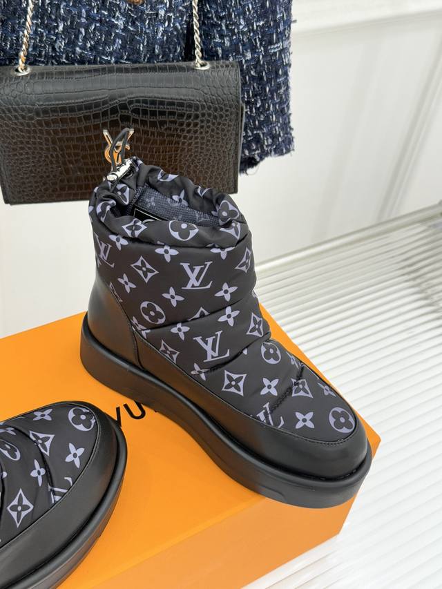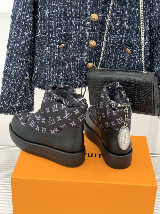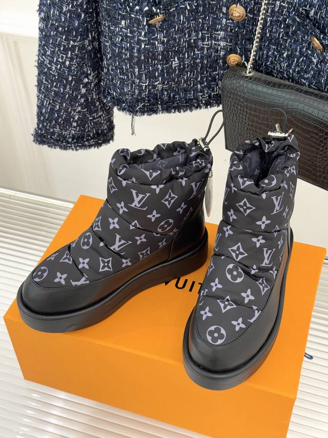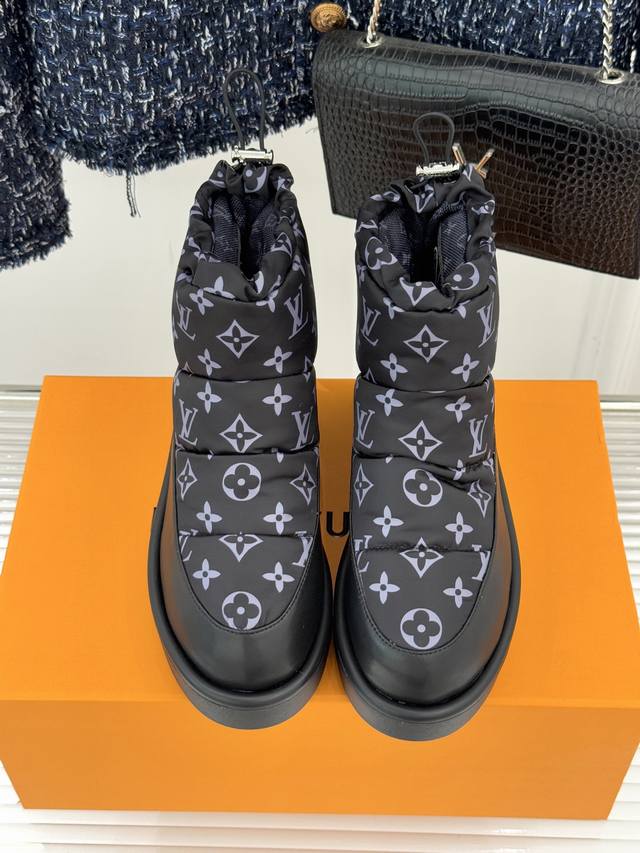 Factory Price DDD L*V Louis Vuitton Classic Autumn/Winter Pillow Down Snow Boots DDD Are you still wearing bulky snow boots? DDD Why not try these super leg-lengthening and slimming down boots? DDD A fresh interpretation of the down concept with a bread-like texture DDD The upper is made of nylon material with waterproof and windproof functions DDD The inner lining is filled with down and features a Monogram pattern DDD Let your feet embrace warmth in the cold winter DDD Custom original foam anti-slip outsole with ultra-lightweight design DDD Weighing 580 grams, you won't feel any weight on your feet DDD Size: 35-39 40 41 42 Customized DDD