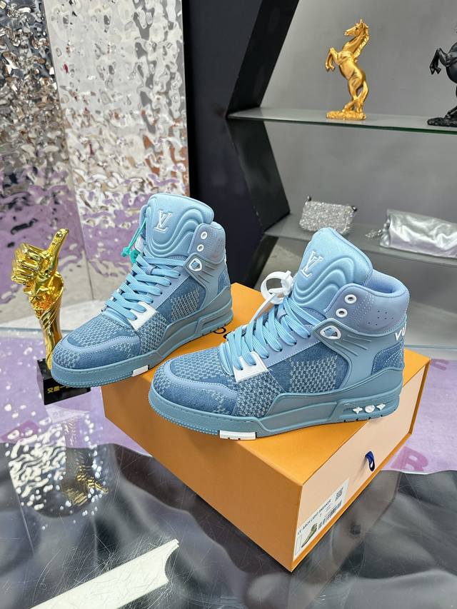 Factory Price: DDD Lv2025 Milan Runway Men's Latest Shipment DDD Lvtrainer High-Top Sneakers DDD Exclusive Custom Version with High-Quality Craftsmanship DDD This L-type high-top sneaker presents an innovative take on a classic model DDD High-end quality! The upper features complex craftsmanship, imported cowhide material, a custom-molded TPU outsole, and a Monogram floral print on the outsole. This shoe is super versatile and looks great with jogger pants. Although it's a high-top, it doesn't look bulky at all, exuding a strong sense of style! DDD Size : 38-44 38, 45, 46 Custom Made DDD