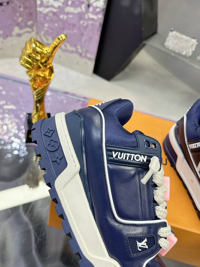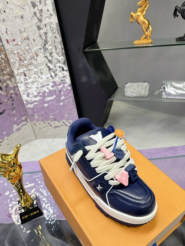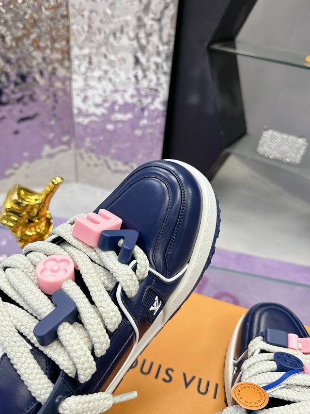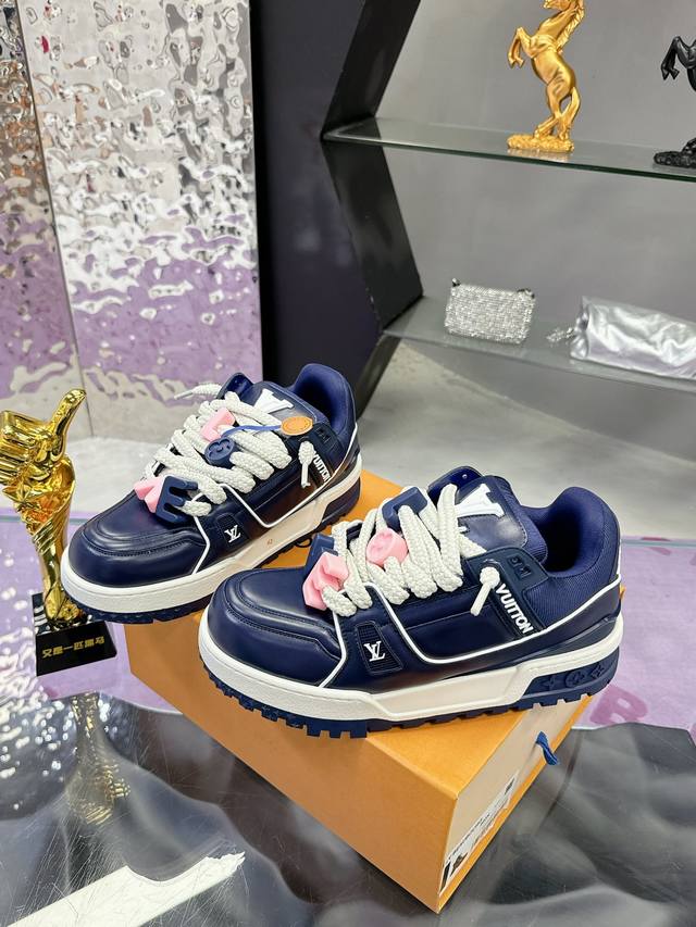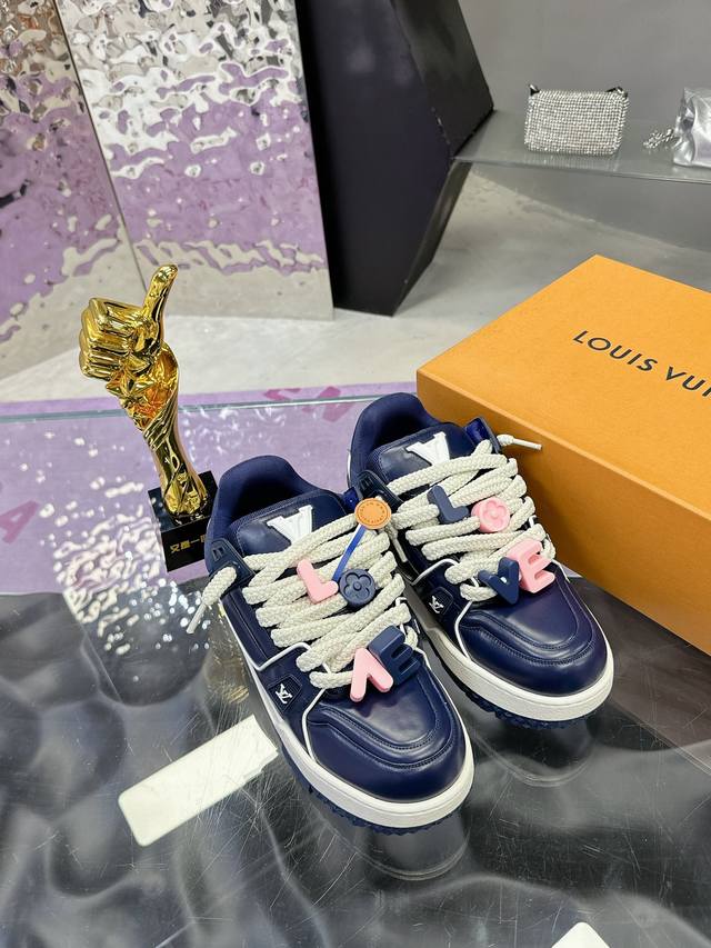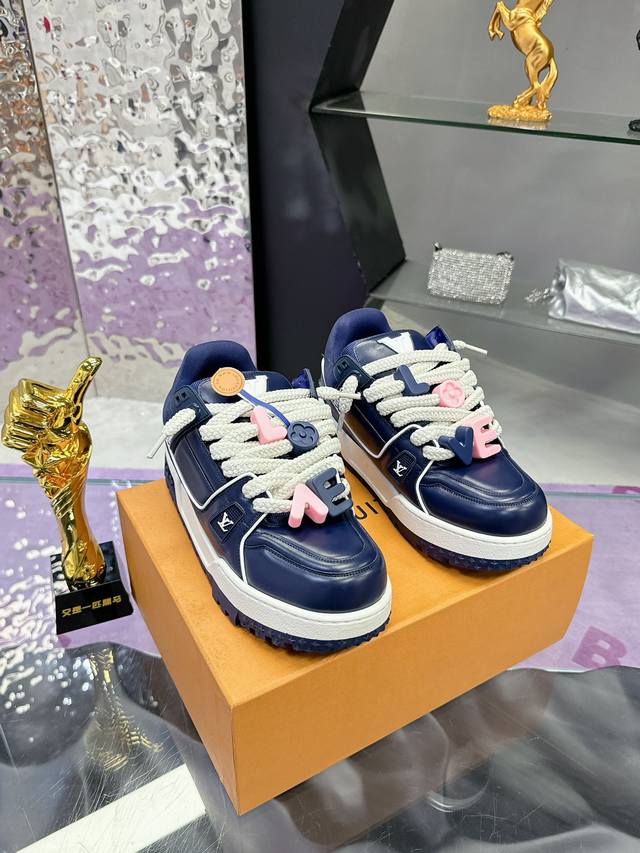 Factory Price: Men's LV Chubby New Color Valentine's Day Series. This version is currently only made to the highest degree of fidelity to the original, replicating all details and packaging. LV Trainer Chubby latest upgraded version. Exclusive mold, top-tier market standard. Welcome to compare! Matching the original design with large star-shaped outsole particles, unlike the thin small stars found in the market. Matching the jewelry-grade buttons! The buttons were molded for a month before finalization! Every button is smooth and not rough, with a crystal-clear texture! The shoe waist features an elastic band for better ankle support and increased comfort, differentiating it from market products. The midsole fabric has an exclusive interplay of solid and void printing effect to avoid being easily mistaken for a fake! Sizes: Men's 39-45 .
