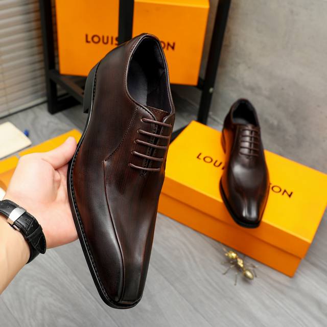 Factory price men's sports shoes original single product trademark: Lv Louis Vuitton business lace-up formal leather shoes