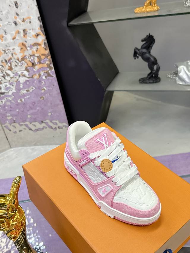 Factory Price: DDD Original Development Quality Shipment Welcome to Compare Lv Trainer Maxi Sneakers Series DDD The Lv Trainer Maxi sneakers bring the relaxed silhouette of the ready-to-wear collection to Virgilabloh's Lv Trainer sneaker design, making a striking appearance on the Spring/Summer menswear runway. The cowhide leather upper is combined with rugged fabric laces, accented with colorful beads highlighting classic brand elements. The Lv lettering is on the tongue, and the Monogram flower adorns the outsole. DDD Mixed Material DDD Made of top-grain cowhide, wrapped in imported custom-printed denim, with a thick lace-up design, a large Monogram print on the side, "Lv 54" badges on the tongue and heel, a rubber outsole decorated with Monogram flowers, and a mesh lining with cotton insole, ensuring ultimate comfort. A timeless classic, quality above all else, a worthwhile purchase! DDD Sizes: Women's 35-40 DDD Full packaging with original gift box DDD