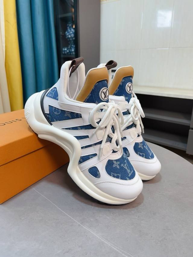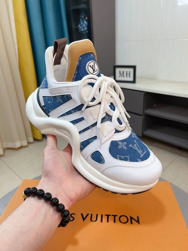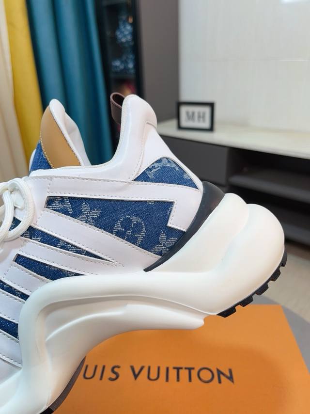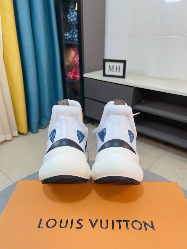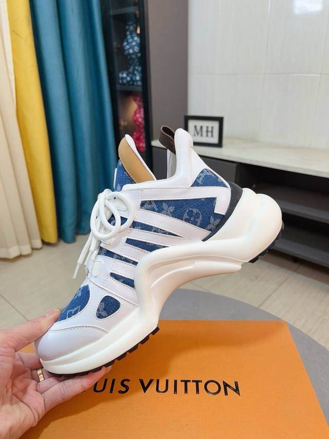 Factory Price p LV Archlight Couple Style Louis Vuitton Hardware Casual Sports Dad Shoes, Heel Height Approx. 5.5cm, Outsole Height and Thickness Approx. 8mm. Material: Eco-friendly TPU and imported cowhide. Lining: Cowhide inner lining. Outsole: Vacuum-sealed foam and TPU combination outsole. Couple Sizes: 35