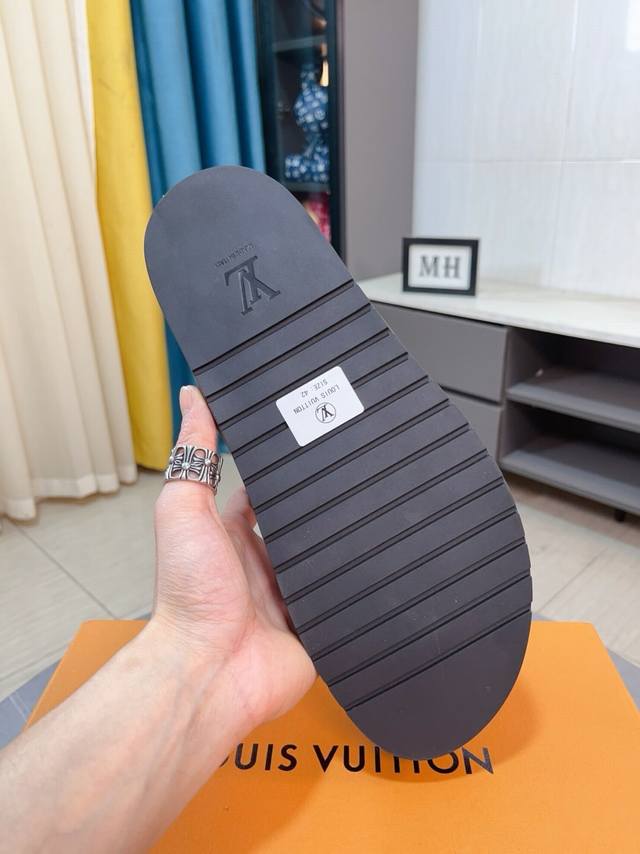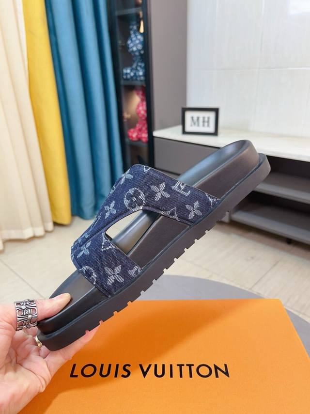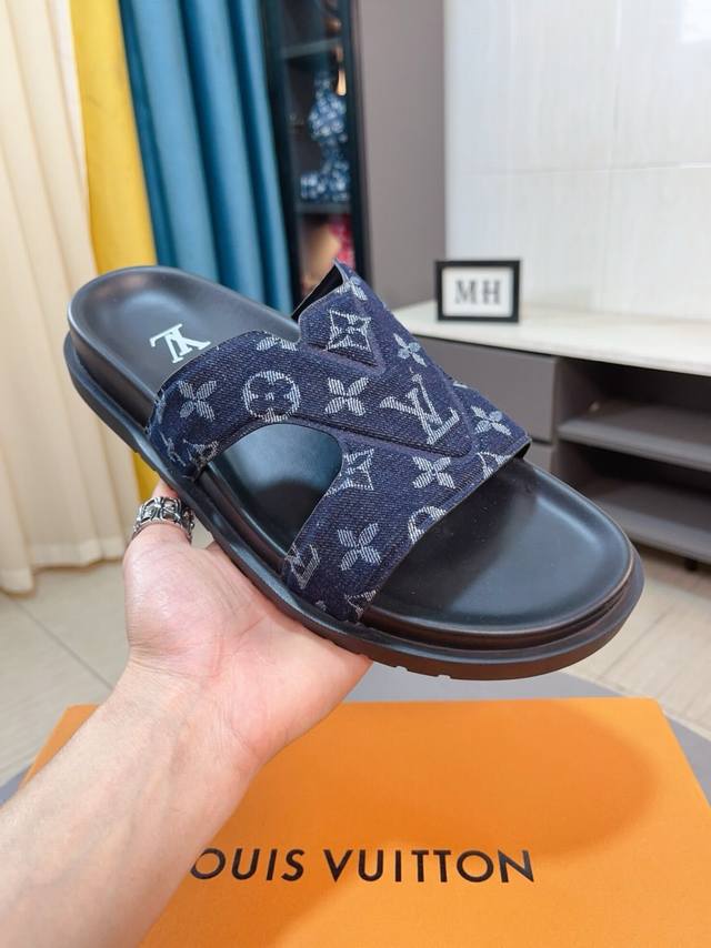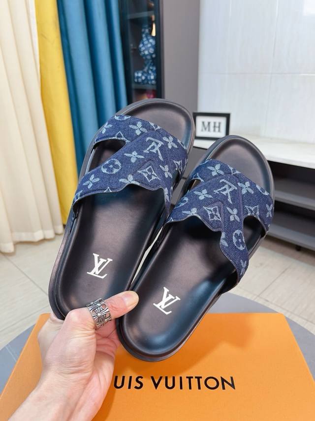 Factory price p Lv multi-color new men's slippers, original quality top version, original special printed denim inner sheepskin, non-slip combination sole, more stable step, more comfortable and light, high-end and generous, size: 38~44