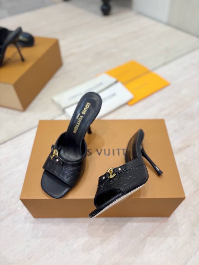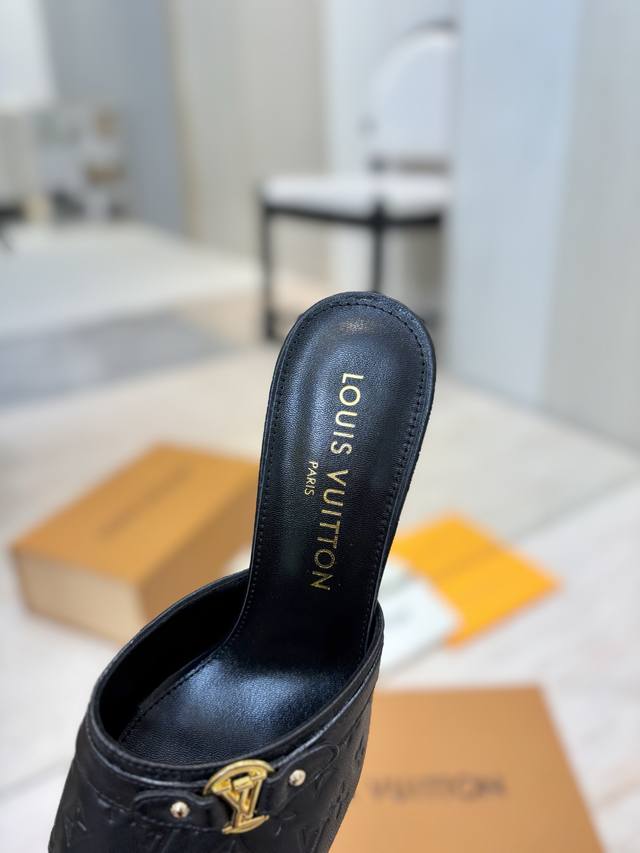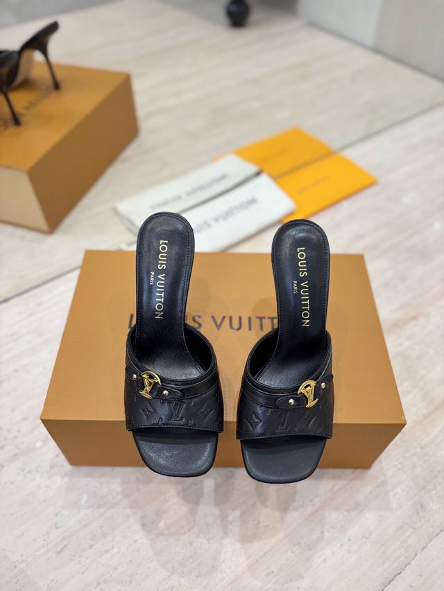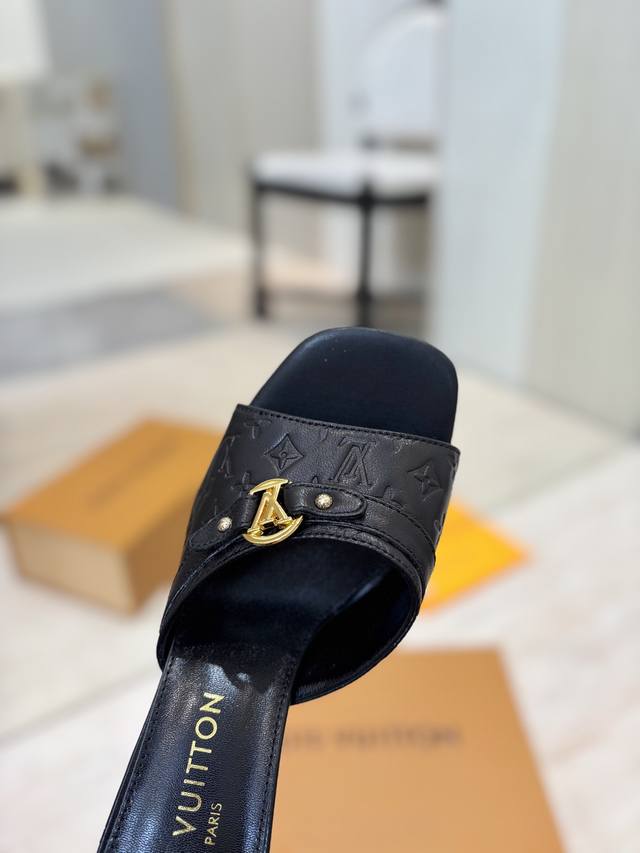 Factory Price (pp): Ddd L*V 2026 Spring/Summer New Arrival, Original Version Ddd Latest Style Lv 6Am Kitten Heel Cowhide Embossed Slippers, Top Quality, BS-Level! High-End! A Must-Have for Bloggers at Home and Abroad, Retro Yet Stylish, Looks Amazing on Your Feet!