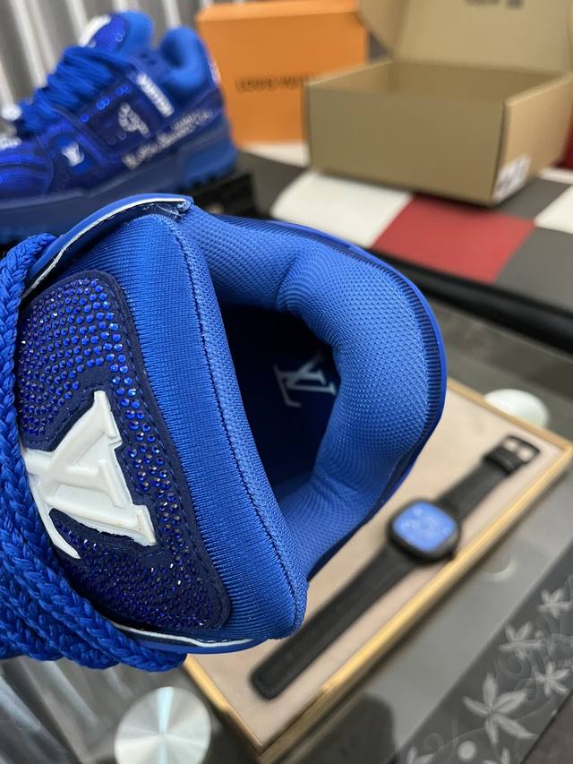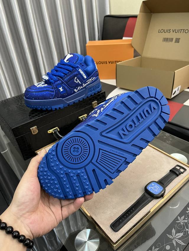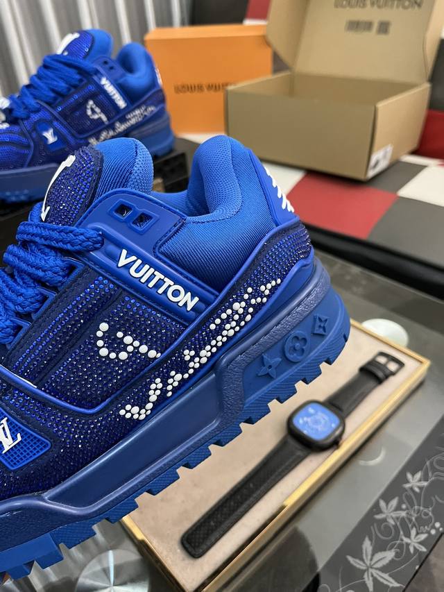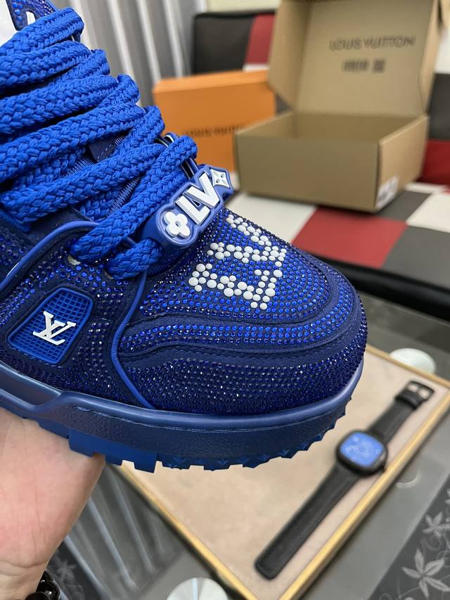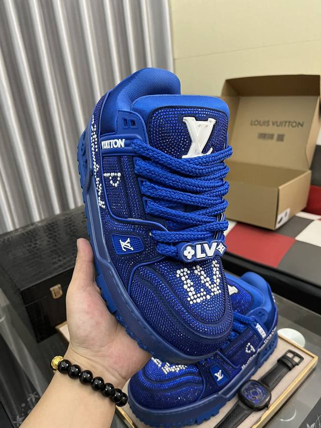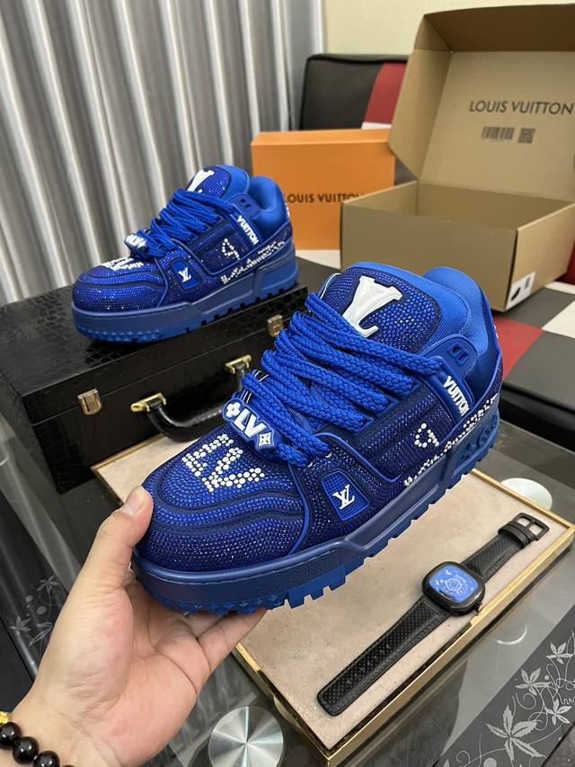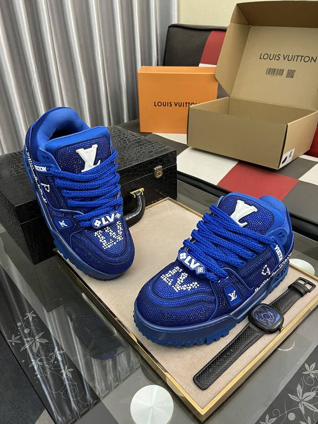 Factory Price Pp: Lv Louis Vuitton 23S catwalk style Trainer Jigglypuff full diamond bread skateboard shoes original foldable pull-out airplane box exclusive mold hidden flower old flower beaded code: 3644