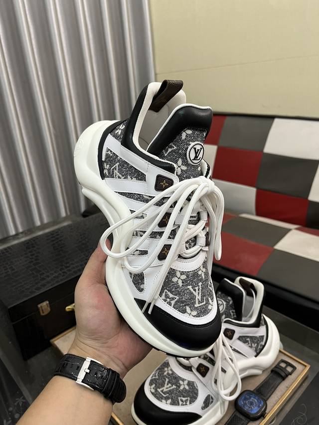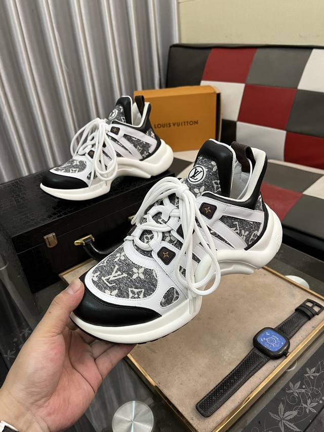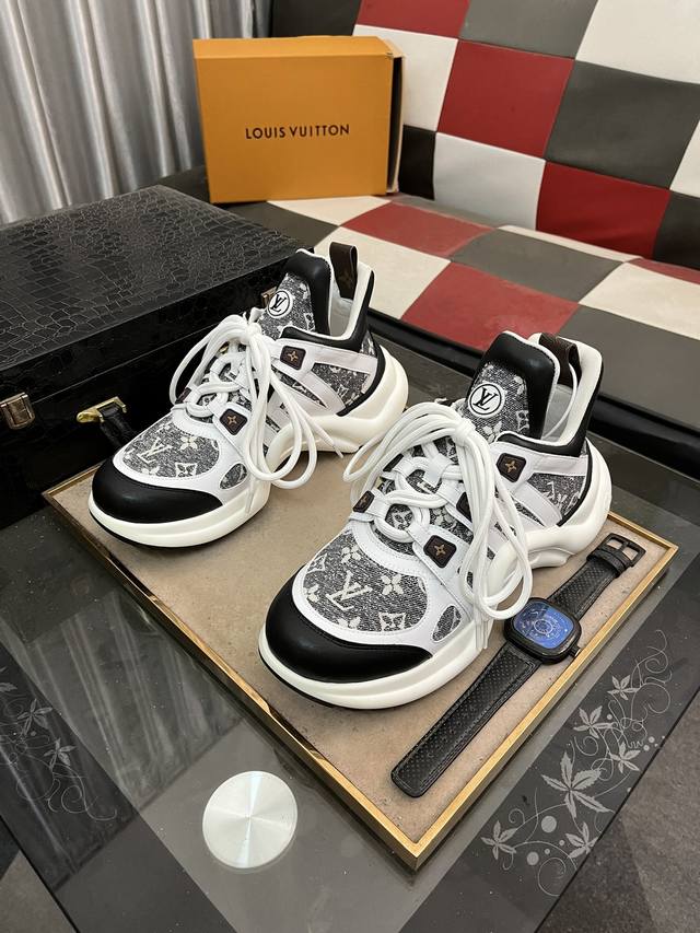 Factory Price (pp): New Louis Vuitton (LV) Classic Chunky Shoes! Made with imported soft calfskin leather, imported flyknit lining, and original durable rubber outsole! High-quality product! Sizes: 38-44 DDD