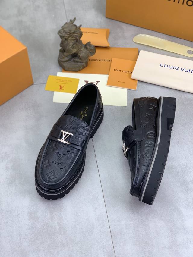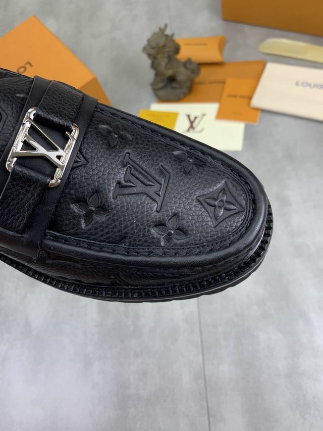 Factory price, real price, Louis Vuitton business leather shoes with water-dyed cowhide lining. Made from genuine imported Italian calfskin, this shoe features a fully water-dyed cowhide lining, meticulously handcrafted by professional shoemakers, and features an original thick EVA foam outsole. Standard sizes: 38-44/45. Custom black available in