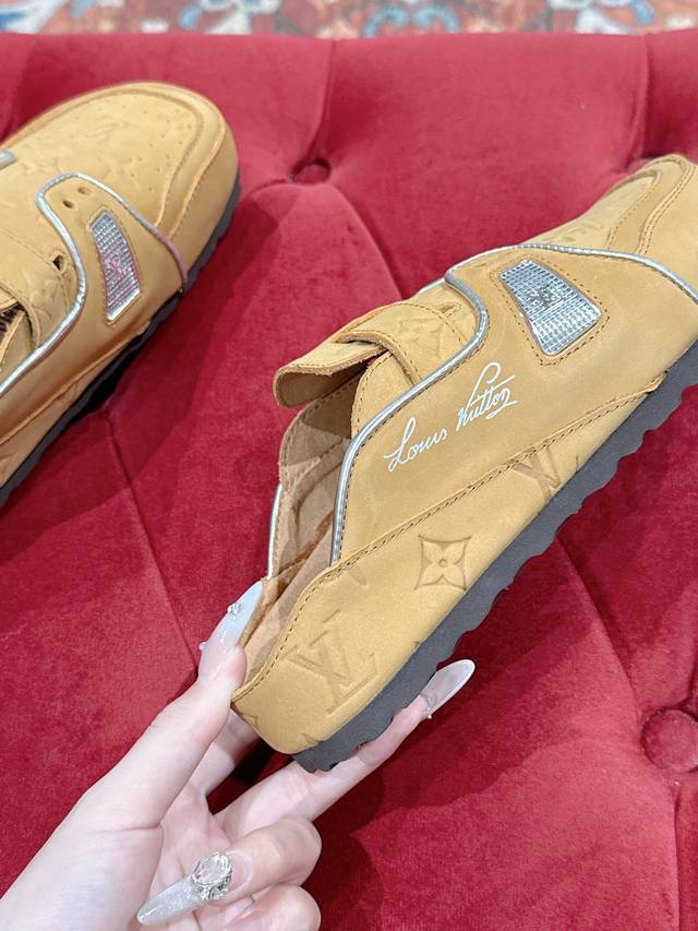 Factory price women's clothing and shoes, original single-piece athletic shoes. Louis Vuitton* Birkenstock collaboration. Closed-toe shoes. A timeless classic, Birkenstock's soft sole is a strong launch. Each brand is unique. Its construction is ergonomically designed to provide complete freedom and comfort for the foot, so the footbed is constructed to perfectly fit the curvature of the foot. Sizes: 35-45, women 40, men 45. Made to order, no returns or exchanges.