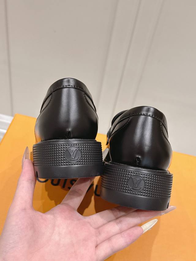 Finally, we've waited for this perfect last! The round toe design is both retro and dynamic. The thick TPU sole provides invisible height, making walking feel like walking on clouds. Made entirely of soft cowhide, inside and out, it feels as soft as a cloud. The classic monogram buckle strap paired with metal lettering is a perfect match for my aesthetic. A 1:1 replica of the original runway design. The color-blocked leather has a delicate sheen under light. A universally flattering piece that instantly elongates the legs. The relaxed yet sophisticated feel is the ultimate essence of contemporary French style. #LouisVuitton2025FallWinter #LoafersTheHighEnd #HighEndStyle Material: Imported calfskin Lining: Cowhide Insole: Imported cowhide Outsole: Italian genuine leather Sizes: 35-41, 40.41 (custom orders are non-refundable).