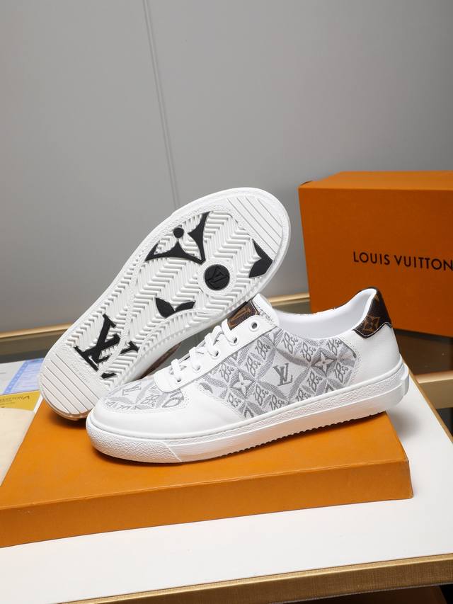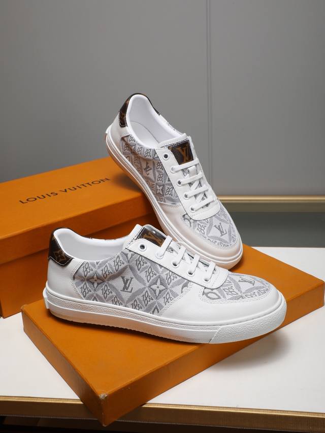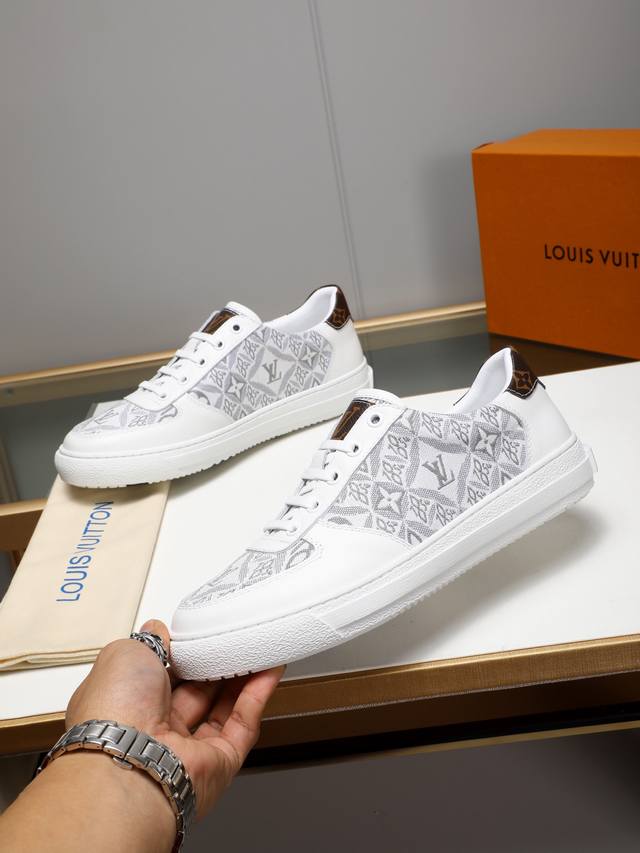 Featured style, factory direct price. Louis Vuitton (LV) shoes: upper made of imported top-grain cowhide and LV classic fabric; lining made of imported leather; non-slip and wear-resistant outsole. A perfect match for every gentleman's status, these shoes exude a sophisticated and stable look. The last remains unchanged regardless of wind or rain, standing the test of time. Sizes: 38, 44, 45. Custom orders are available.