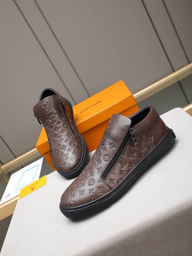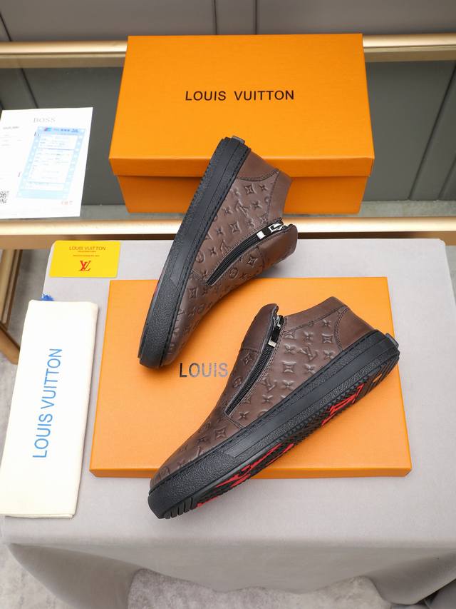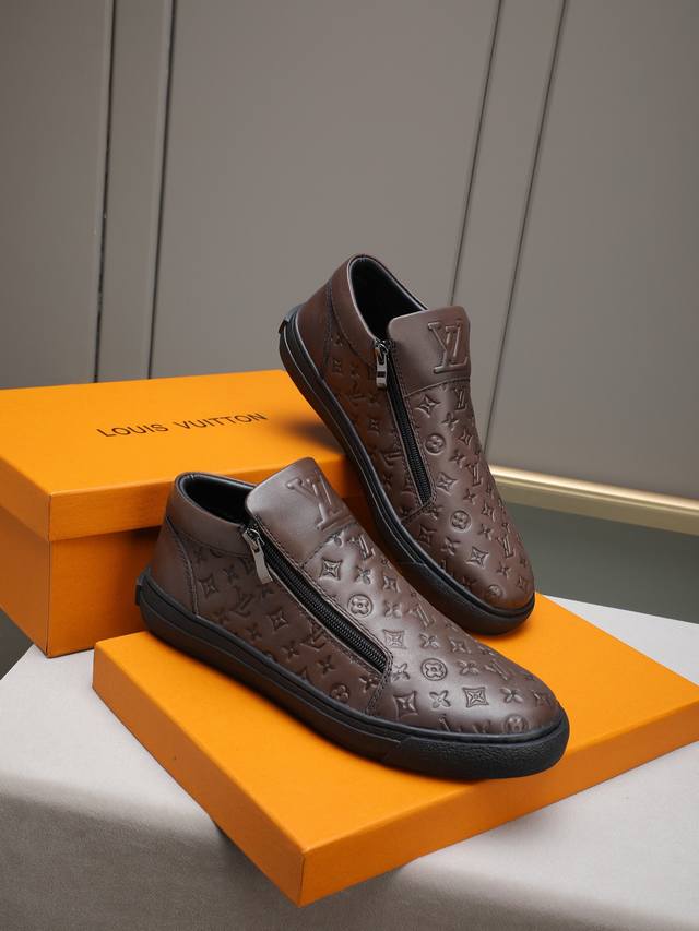 Featured style, factory direct price, new arrival Louis Vuitton LV shoes. Upper made of imported top-grain cowhide with embossed breathable sheepskin lining and a non-slip, wear-resistant outsole. A perfect match for every gentleman's status, these shoes exude a sophisticated and stable look. The last remains unchanged regardless of wind or rain, standing the test of time. Sizes: 38, 44, 45. Custom orders are available.