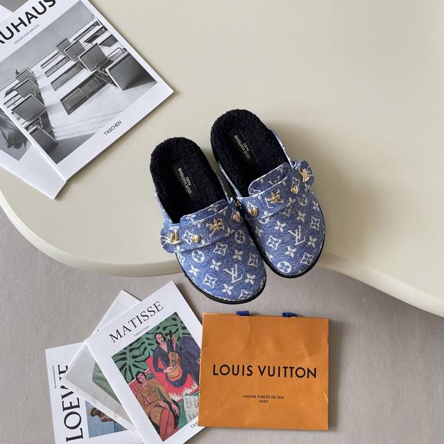 Fleece-lined Louis Vuitton 2025 Boutique Limited Edition for Couples DDD New Official Release Exclusive First Launch Louis Vuitton Lv 25S Printed Bag Toe Slippers Lv Slippers Half Slippers Lv Half Slippers Fleece-lined Half Slippers DDD Hot Search on Xiaohongshu Celebrity Style DDD 25S Autumn/Winter Couple Slippers DDD Original Label and Box Correct Version DDD Custom Printed Upper DDD Lining: Leather Lining Fleece Lining DDD Original Hardware Buckles DDD Private Label Genuine Leather Outsole DDD Full Boutique Packaging DDD Size: 35-45 Couple Sizes DDD