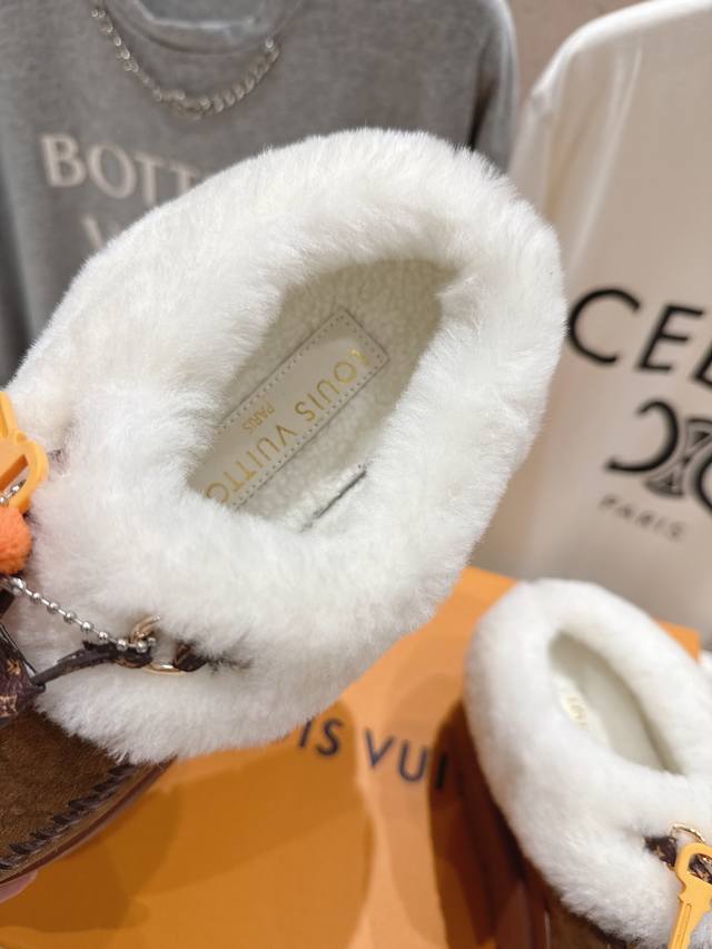 High-quality factory direct Louis Vuitton Ss25 LV Fall/Winter New Thick-soled Wool Half-length Furry Slippers Warm Cotton Shoes DDD LV Winter Ski Series Monogram Snow Boots, extremely recognizable! Many celebrities and influencers have recommended these super-fine suede uppers that are waterproof, windproof, and warm. The wool lining is comfortable and breathable. It's the perfect season now, so shopaholics should stock up! In winter, when you're running and jumping around every day, the most important thing is that the sole is lightweight! Super lightweight, maximum comfort , truly a walking-in-the-clouds feel, quality that stands the test of time. Don't overthink shoes! We strive for the highest cost-performance ratio, a stylish choice that's both rugged and comfortable for everyday wear. DDD Upper: Imported custom high-gloss suede DDD Lining: Imported wool DDD Outsole: Original molded anti-slip outsole DDD Sizes: 35-41 40.41 Made to order, no returns or exchanges DDD