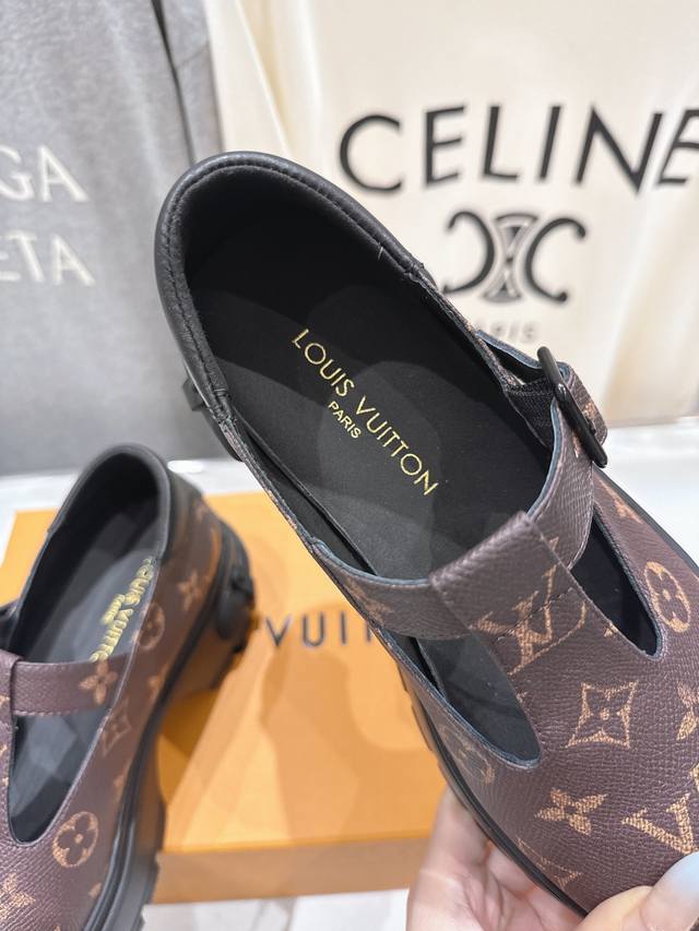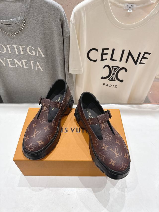 High-quality factory direct Louis Vuitton SS25 LV new platform Mary Jane loafers. These loafers feature a lightweight and comfortable upper crafted from top-grain calfskin. The thick EVA outsole is adorned with a striking embossed pattern, offering a stylish yet edgy look perfect for everyday wear. Upper: Imported top-grain cowhide; Lining: Cowhide; Outsole: Original molded anti-slip outsole; Sizes: 35-41 (40.41 is custom-made and non-refundable).