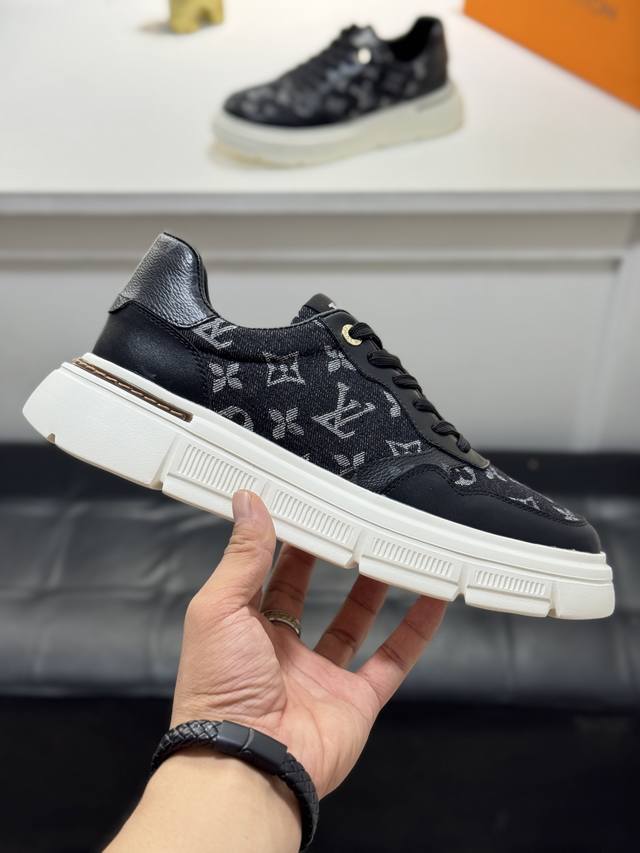 Louis Vuitton trendy yet understated men's casual shoes. LV cowhide upper with denim stitching, comfortable and breathable, sheepskin lining, original rubber outsole, two colors available ~ A must-have for stylish men.