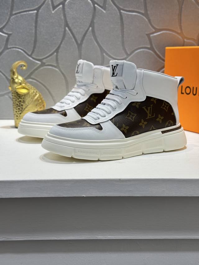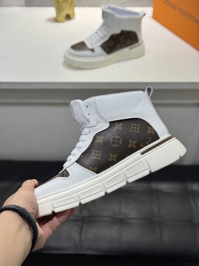 Louis Vuitto Top-Tier Authentic Replica Louis Vuitton High-Top Men's Casual Shoes, Trendy and Stylish Yet Understated. Features a cowhide upper, breathable and comfortable design, sheepskin lining, original rubber outsole, and is available in two colors. A must-have for stylish men. Sizes: 38-44, 45 (custom sizes available).