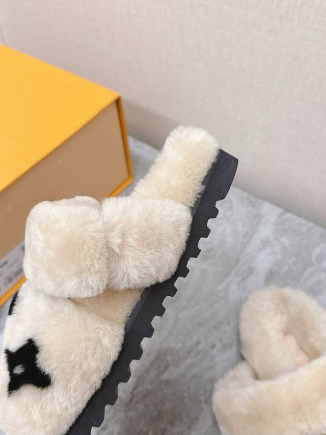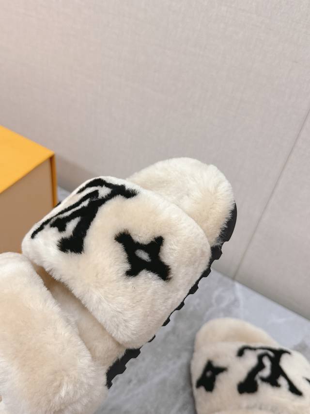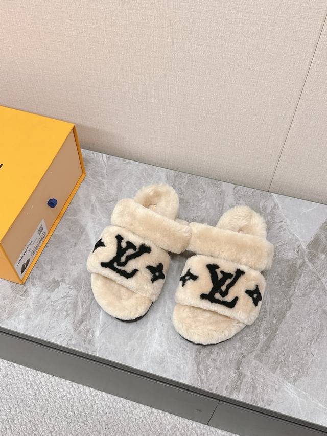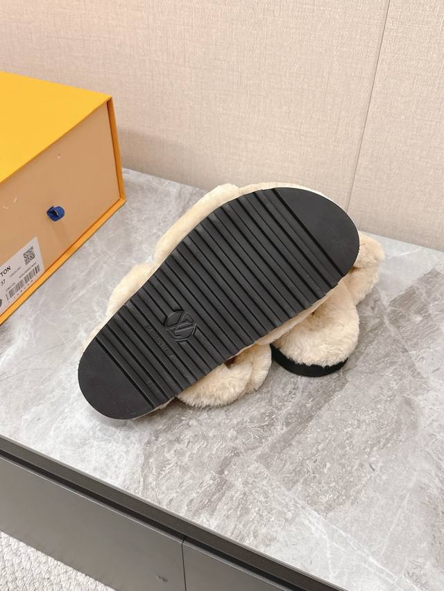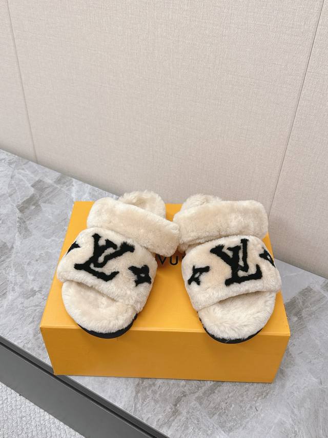 Louis Vuitton Autumn/Winter Newest Furry Slippers~ DDD These furry slippers are so beautiful and high-end! They're perfect with autumn/winter denim shorts! They instantly give you the ideal height! A must-have style, with fashionable elements and a luxurious feel. Wearing them always showcases a woman's fashionable charm