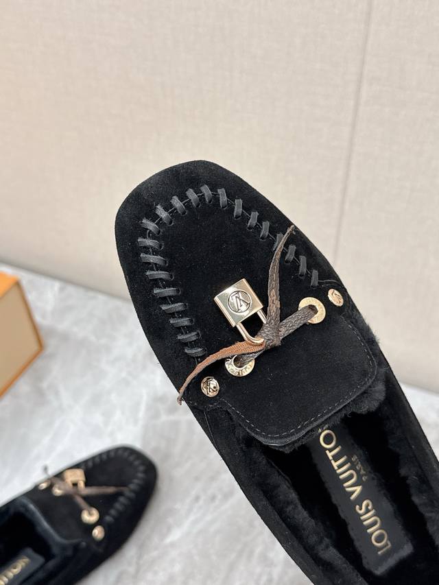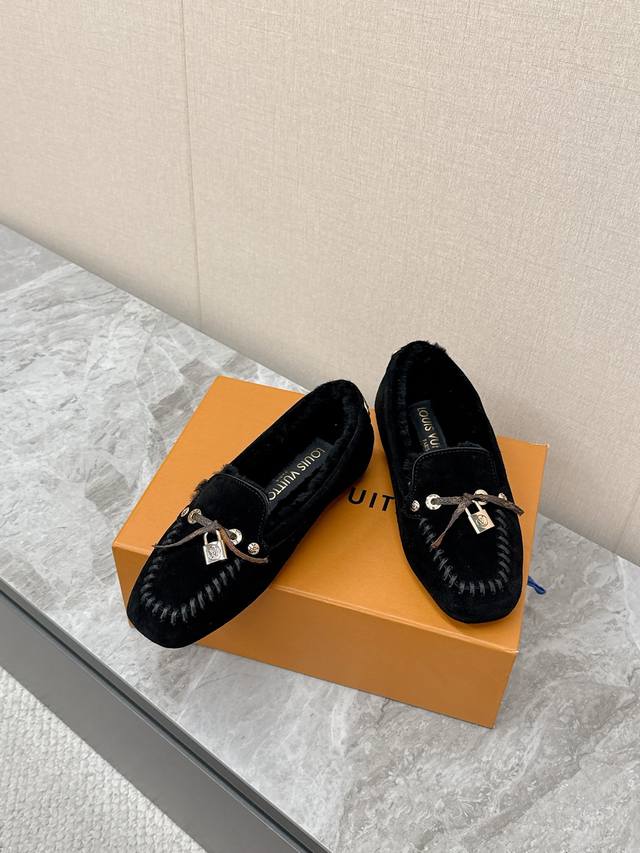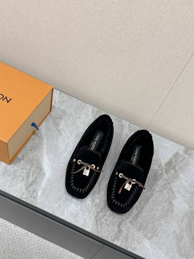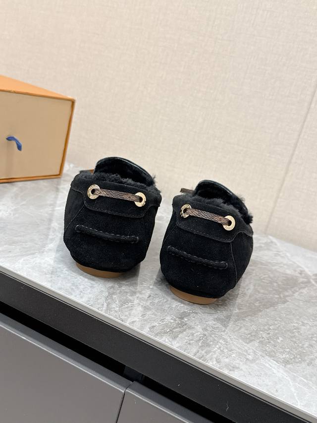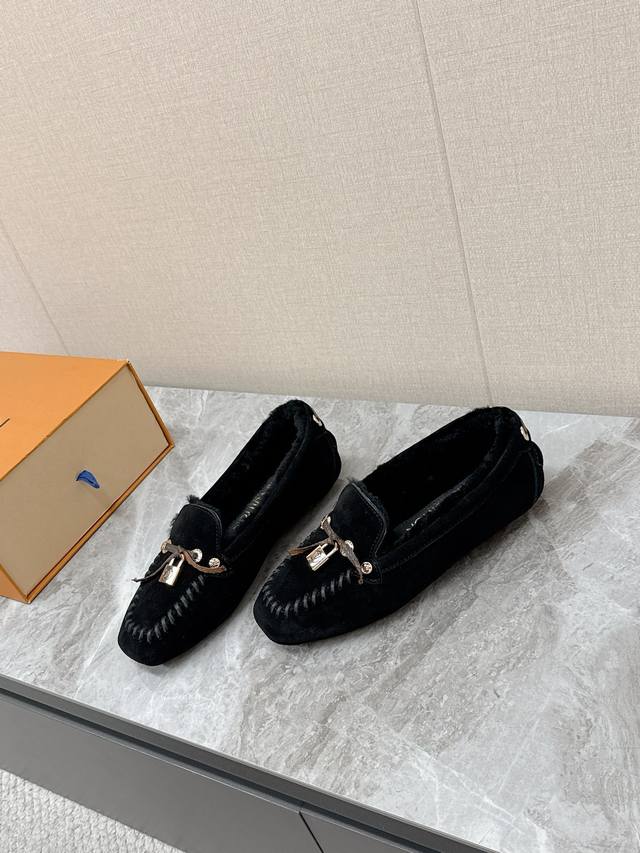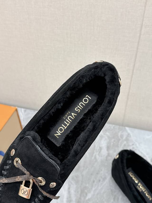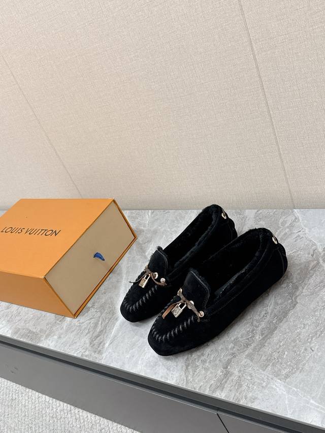 Louis Vuitton Fall/Winter Newest Driving Shoes, Furry Shoes. Highly recommended by celebrities and influencers, these are incredibly popular. The thin sole design is simple yet stylish, featuring leather stitching, the brand logo, and metal buckles for added brand recognition. Super versatile and flattering. Tried and adjusted countless times for a soft and comfortable fit. Material: Original custom-made imported top-grain cowhide. Lining: Genuine wool for extra warmth. Original molded injection-molded TPU material. Sizes: 35-41, 40, 41. Custom orders are non-refundable.