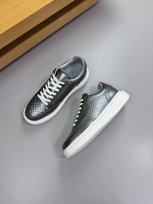 - Upper: Gunmetal calfskin leather, air-pressed brand logo, high-frequency silk-screen brand logo on the body, tongue, and heel