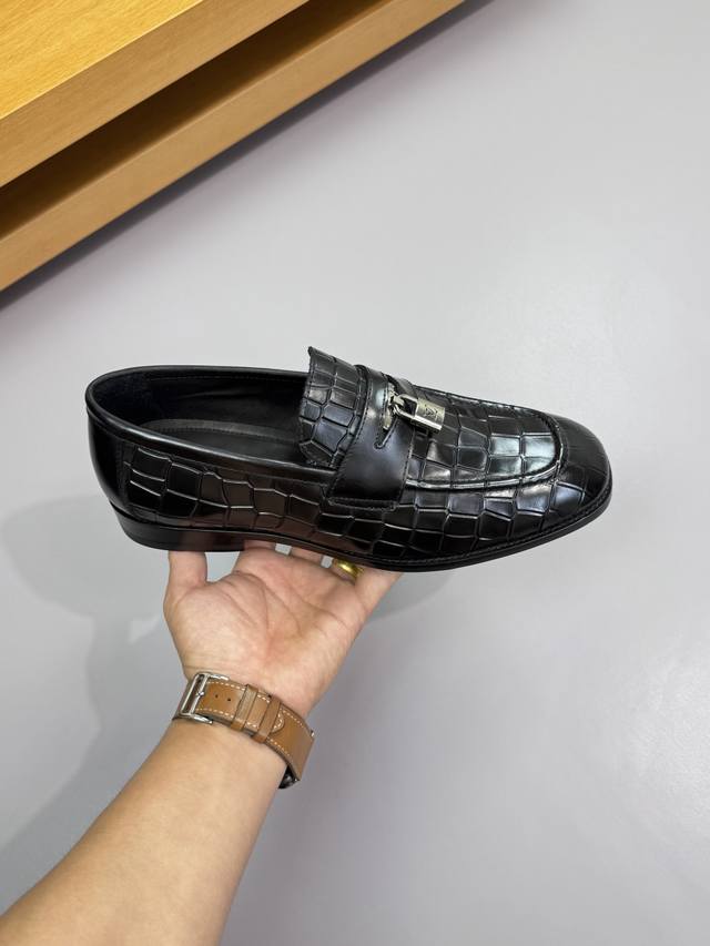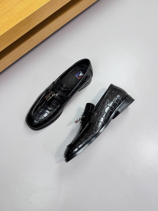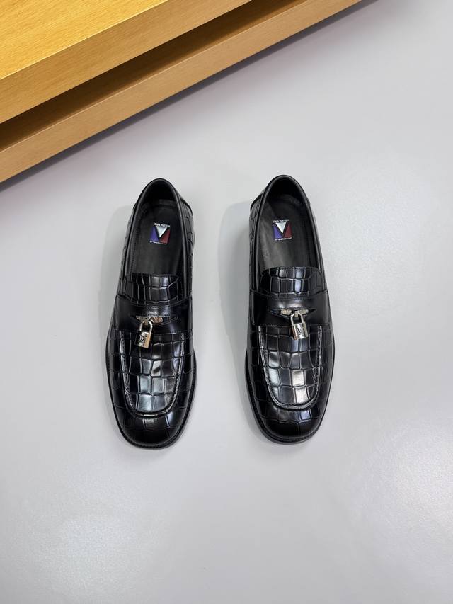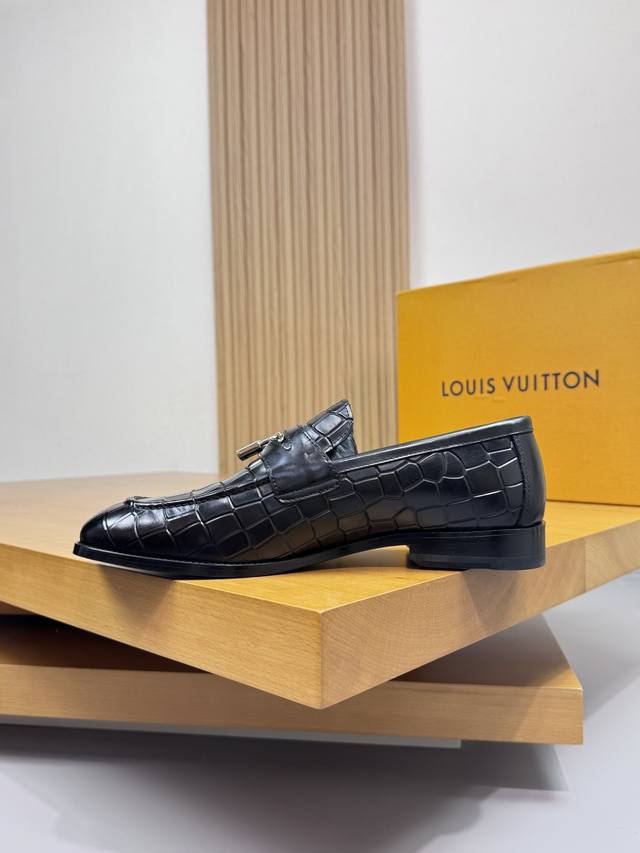 Louis Vuitton - High-end quality original dress shoes - Upper: Stone-patterned calfskin, tufted stitching, brand metal buckles - Lining: Water-dyed cowhide - Outsole: Ultra-lightweight genuine leather and rubber; composite molded genuine leather outsole - Super high quality control and exquisite workmanship: highlighting high-end luxury - Size: 39-44, 38, 45, 46 can be customized L0200