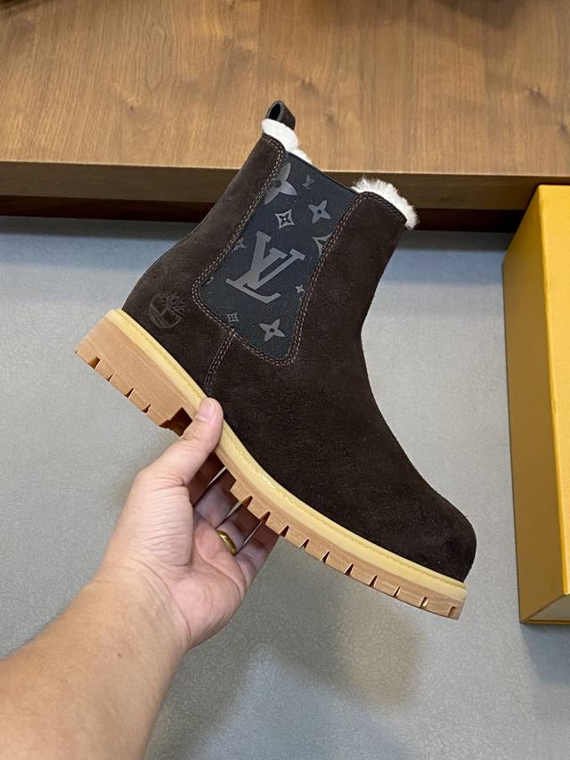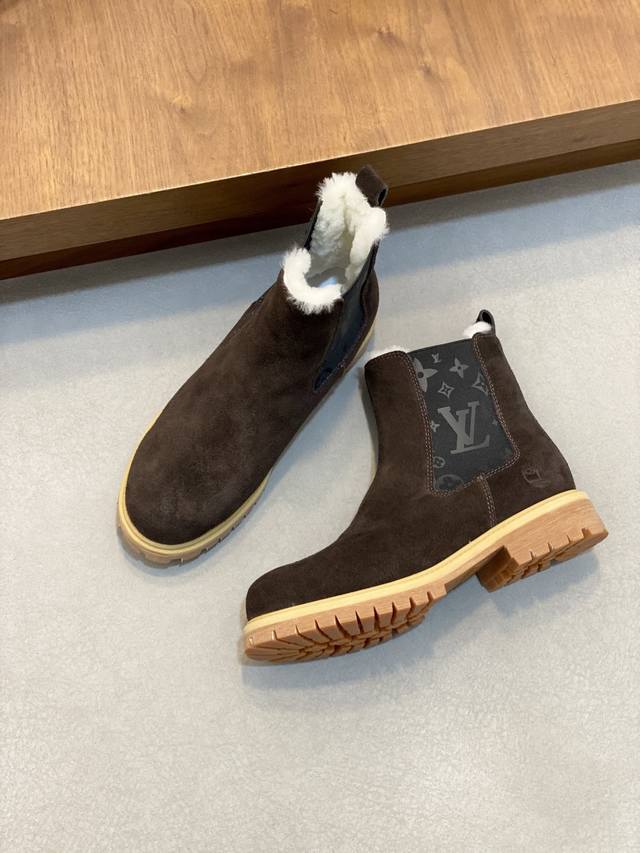 Louis Vuitton DDD - High-end quality original men's boots DDD - Upper: High-gloss cowhide with integrated fur and leather construction, brand injection molded modules stitched into the shoe body DDD - Outsole: Original TPR rubber; DDD - Super high quality control and exquisite workmanship: Highlighting high-end luxury DDD - Size: 39-44 38.45. Custom made DDD