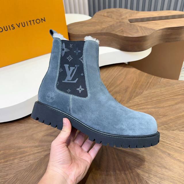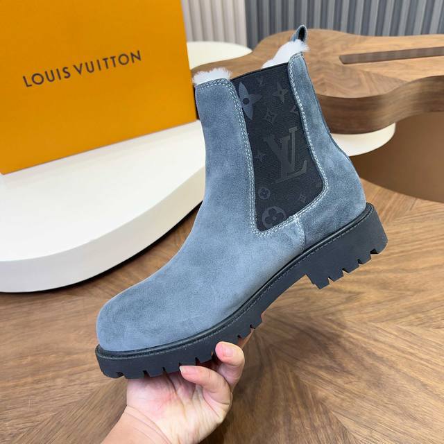Louis Vuitton DDD - High-end quality original men's boots DDD - Upper: High-gloss cowhide with integrated fur and leather construction, brand injection molded modules stitched into the shoe body DDD - Outsole: Original TPR rubber; DDD - Super high quality control and exquisite workmanship: Highlighting high-end luxury DDD - Size: 39-44 38.45. Custom made DDD