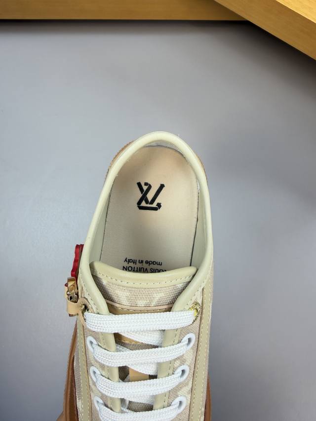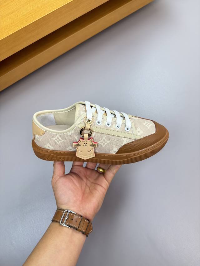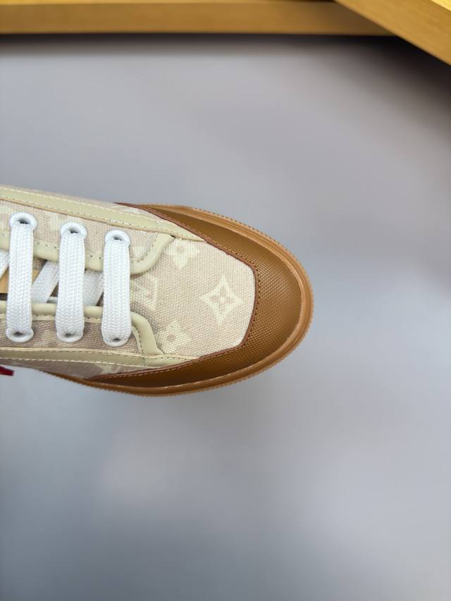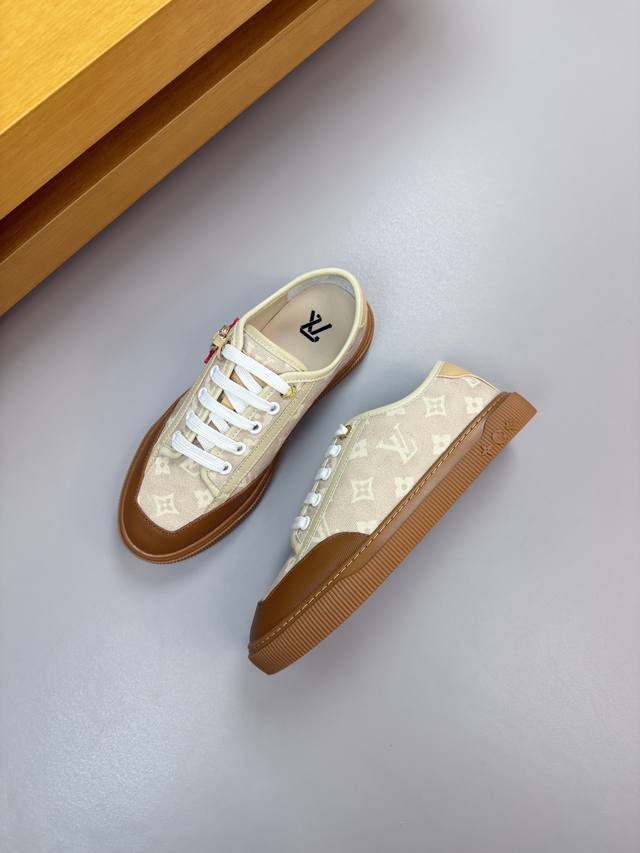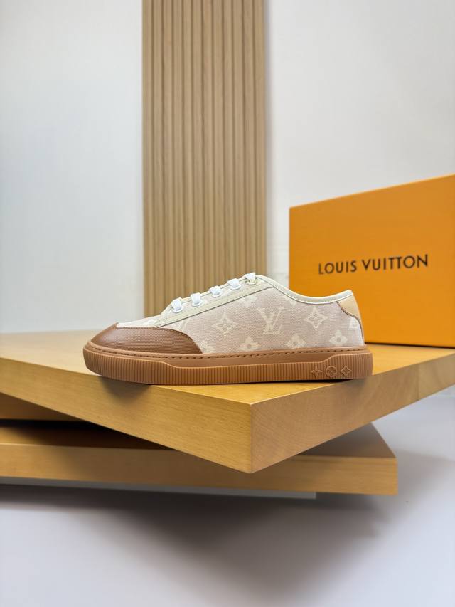Louis Vuitton - High-end quality original single-piece casual sports shoes for couples - Upper: Nappa calfskin, brand canvas fabric with color-printed brand totem, tongue, heel, and silkscreened brand logo - Lining: Water-dyed cowhide, insole; brand canvas - Outsole: Ultra-lightweight TPR rubber; molded outsole - Super high quality control and exquisite workmanship: highlighting high-end luxury - Size: Unisex 35-44, Women's 35, 40, Men's 38, 45, 46, 47, custom orders available L0179