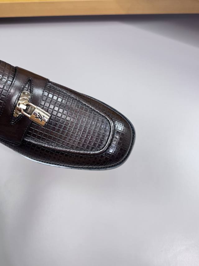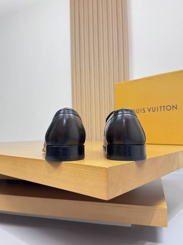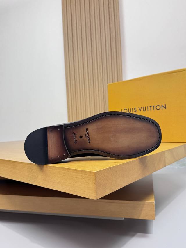 Louis Vuitton - High-end quality original single-piece formal leather shoes - Upper: Nappa calfskin, hand-dyed with air-pressed brand logo, tufted stitching, brand metal buckles - Lining: Water-dyed cowhide - Outsole: Ultra-lightweight genuine leather and rubber; combined molded genuine leather outsole - Super high quality control and exquisite workmanship: highlighting high-end luxury - Size: 39-44, 38, 45, 46 can be customized L0200