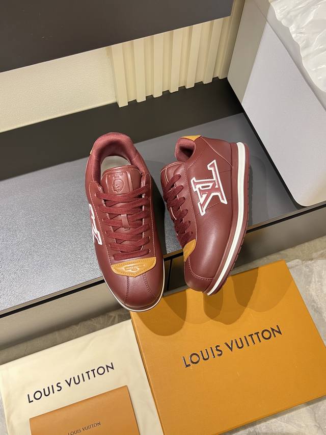 Louis Vuitton High-Quality Original Casual Sports Shoes. Upper: Nappa calfskin, printed brand logo, stitched brand modules on the shoe body, toe, tongue, and heel; air-pressed brand logo. Lining: Brand canvas. Outsole: Ultra-lightweight original TPU rubber foam; molded outsole with ultra-high quality control and exquisite workmanship, highlighting high-end luxury. Size: 39-44, 45, custom orders available.