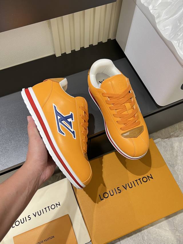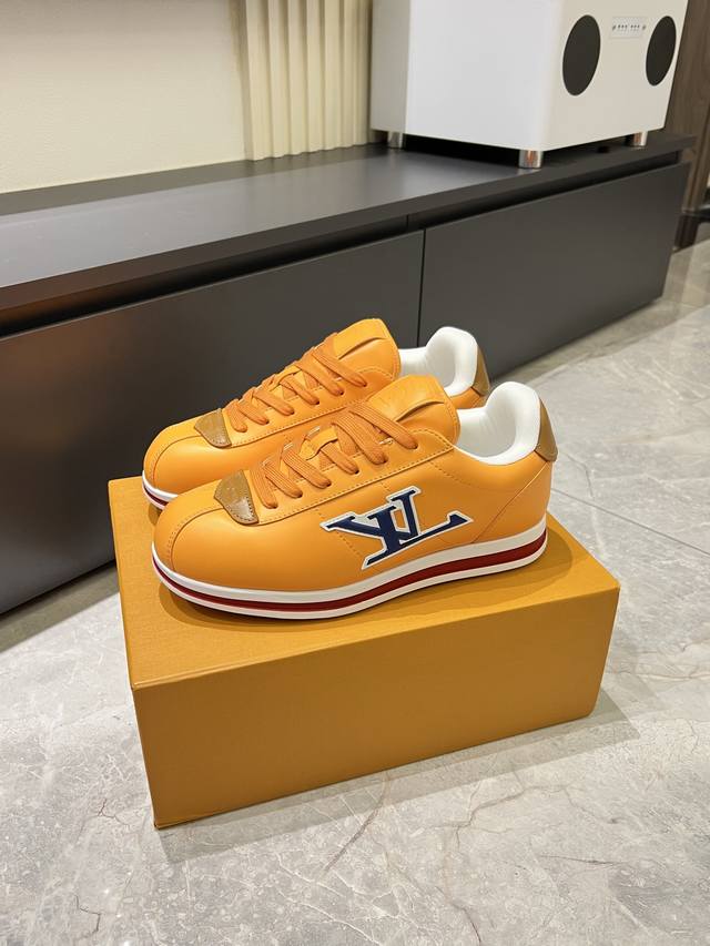 Louis Vuitton High-Quality Original Casual Sports Shoes. Upper: Nappa calfskin, printed brand logo, stitched brand modules on the shoe body, toe, tongue, and heel; air-pressed brand logo. Lining: Brand canvas. Outsole: Ultra-lightweight original TPU rubber foam; molded outsole with ultra-high quality control and exquisite workmanship, highlighting high-end luxury. Size: 39-44, 45, custom orders available.