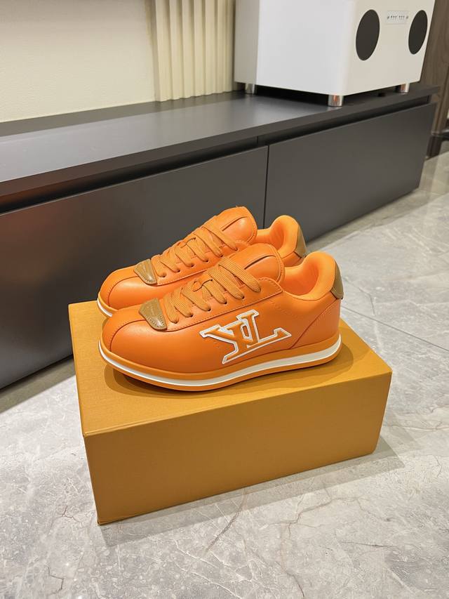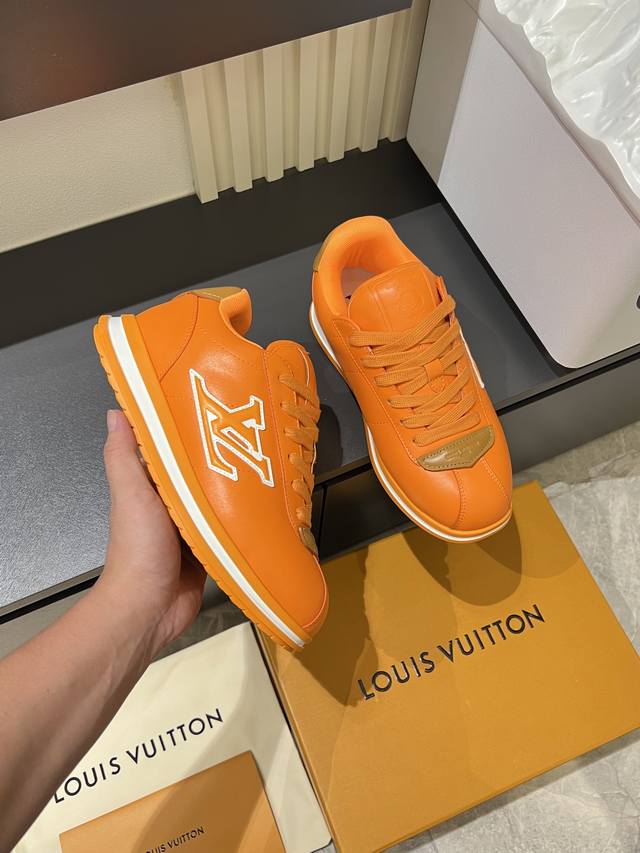 Louis Vuitton High-Quality Original Casual Sports Shoes. Upper: Nappa calfskin, printed brand logo, stitched brand modules on the shoe body, toe, tongue, and heel; air-pressed brand logo. Lining: Brand canvas. Outsole: Ultra-lightweight original TPU rubber foam; molded outsole with ultra-high quality control and exquisite workmanship, highlighting high-end luxury. Size: 39-44, 45, custom orders available.