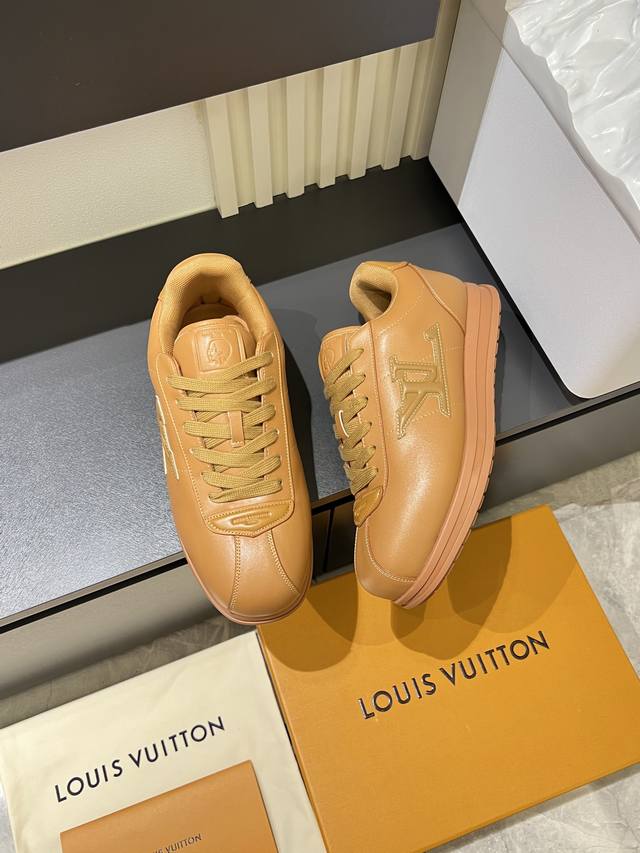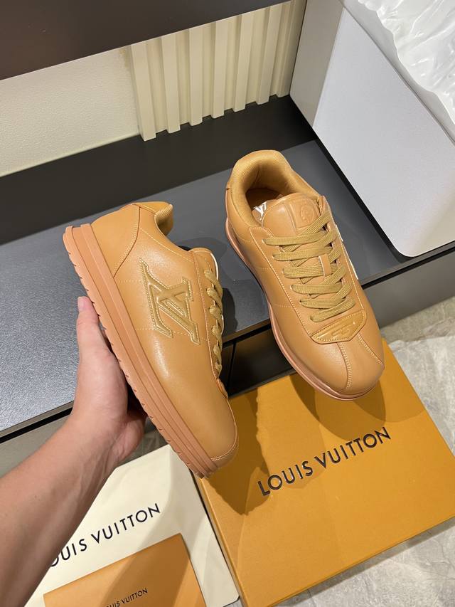 Louis Vuitton High-Quality Original Casual Sports Shoes. Upper: Nappa calfskin, printed brand logo, stitched brand modules on the shoe body, toe, tongue, and heel; air-pressed brand logo. Lining: Brand canvas. Outsole: Ultra-lightweight original TPU rubber foam; molded outsole with ultra-high quality control and exquisite workmanship, highlighting high-end luxury. Size: 39-44, 45, custom orders available.