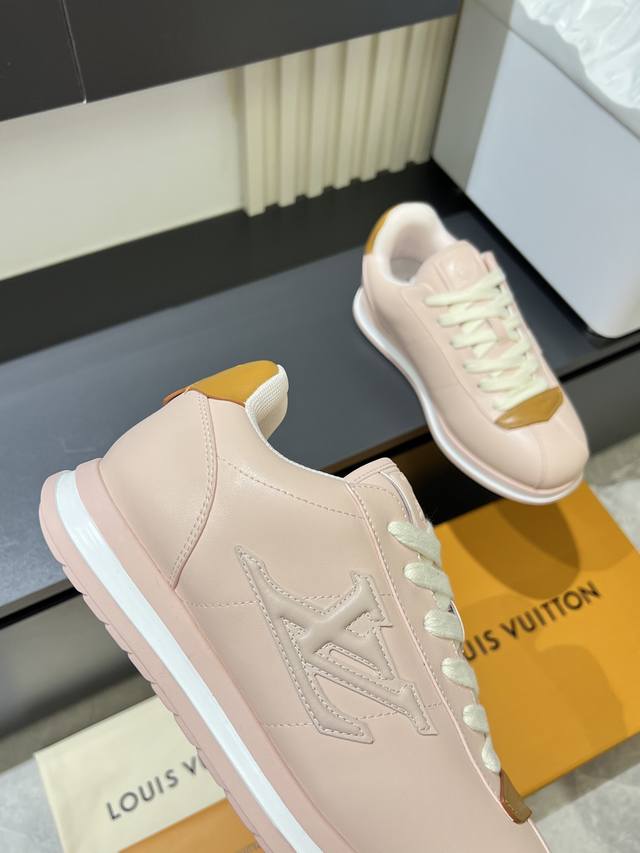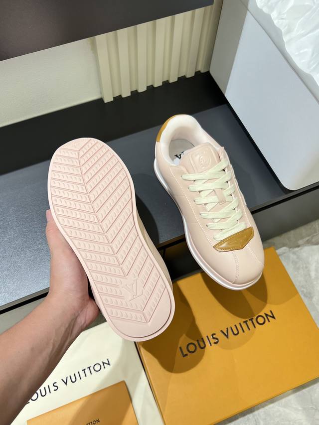 Louis Vuitton High-Quality Original Casual Sports Shoes. Upper: Nappa calfskin, printed brand logo, stitched brand modules on the shoe body, toe, tongue, and heel; air-pressed brand logo. Lining: Brand canvas. Outsole: Ultra-lightweight original TPU rubber foam; molded outsole with ultra-high quality control and exquisite workmanship, highlighting high-end luxury. Size: 39-44, 45, custom sizes available.