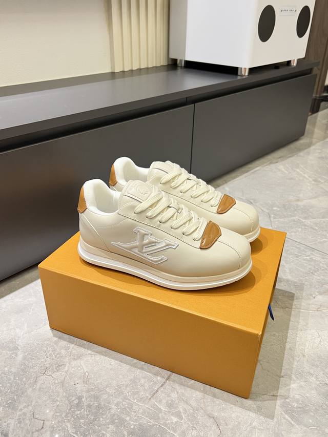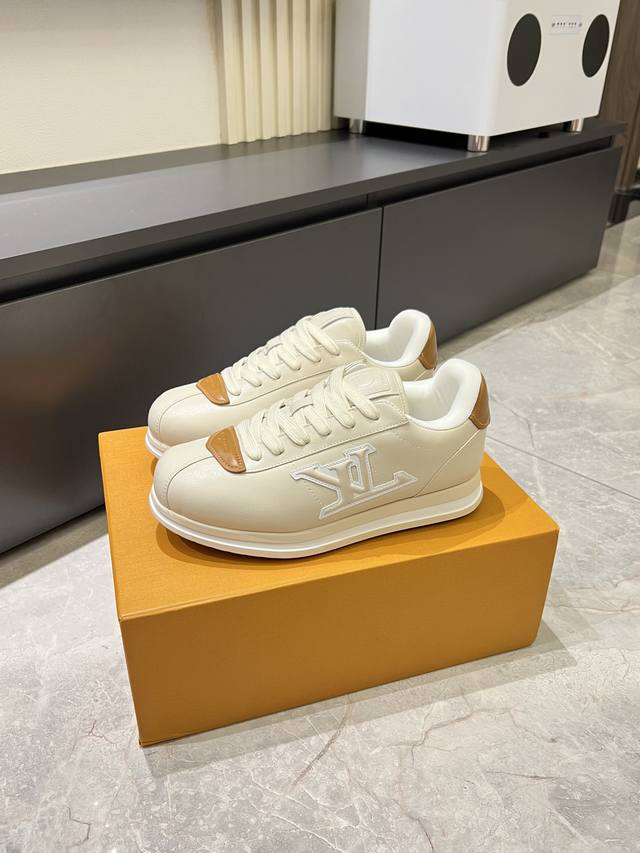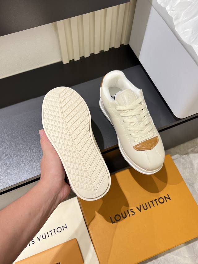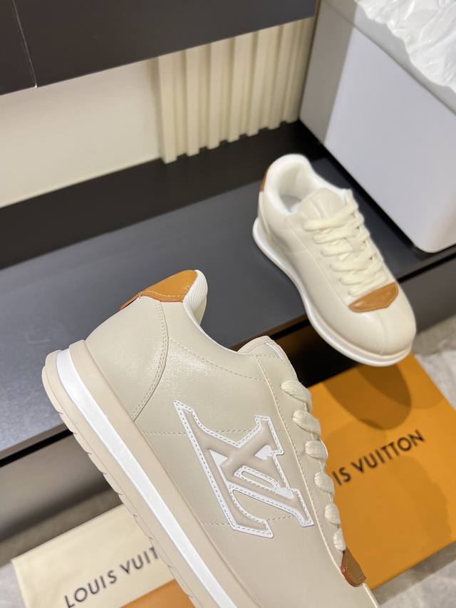 Louis Vuitton High-Quality Original Casual Sports Shoes. Upper: Nappa calfskin, printed brand logo, stitched brand modules on the shoe body, toe, tongue, and heel; air-pressed brand logo. Lining: Brand canvas. Outsole: Ultra-lightweight original TPU rubber foam; molded outsole with ultra-high quality control and exquisite workmanship, highlighting high-end luxury. Size: 39-44, 45, custom orders available.