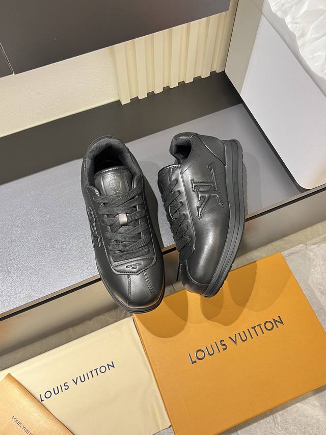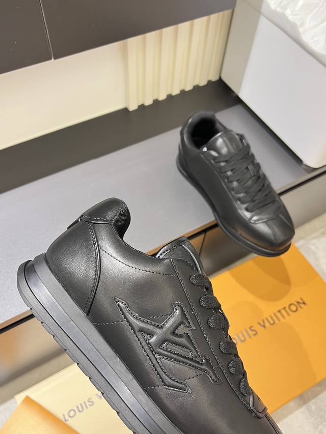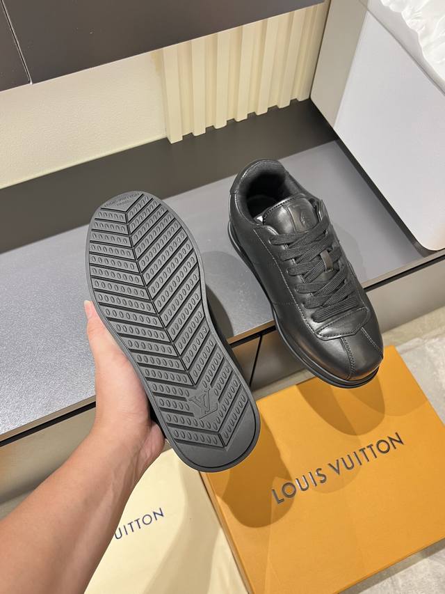Louis Vuitton High-Quality Original Casual Sports Shoes. Upper: Nappa calfskin, printed brand logo, stitched brand modules on the shoe body, toe, tongue, and heel; air-pressed brand logo. Lining: Brand canvas. Outsole: Ultra-lightweight original TPU rubber foam; molded outsole with ultra-high quality control and exquisite workmanship, highlighting high-end luxury. Size: 39-44, 45, custom orders available.