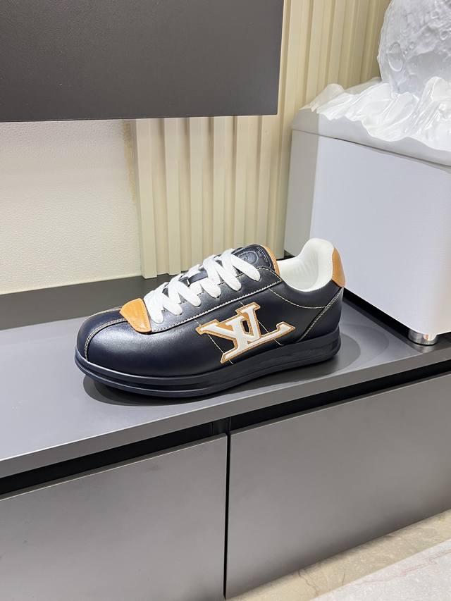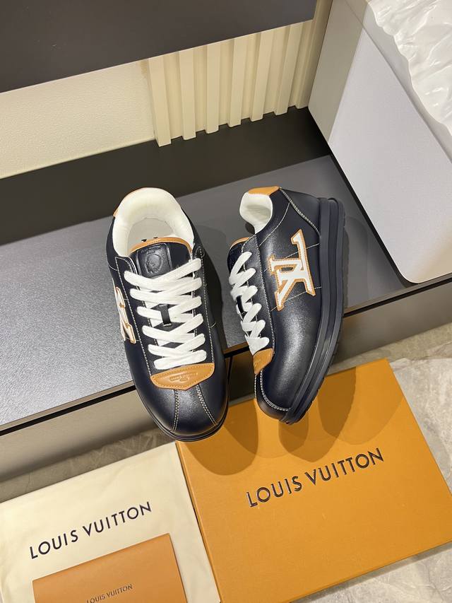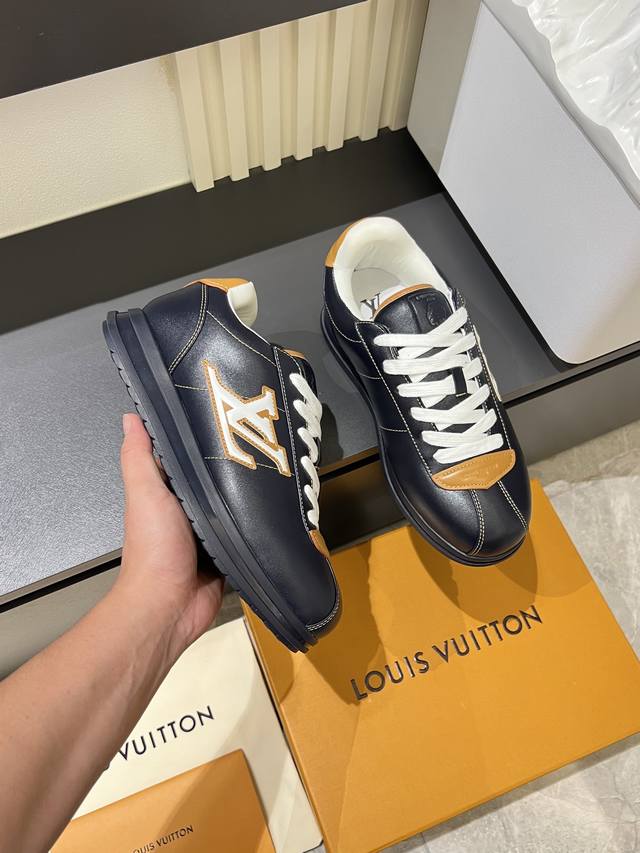 Louis Vuitton High-Quality Original Casual Sports Shoes. Upper: Nappa calfskin, printed brand logo, stitched brand modules on the shoe body, toe, tongue, and heel; air-pressed brand logo. Lining: Brand canvas. Outsole: Ultra-lightweight original TPU rubber foam; molded outsole with ultra-high quality control and exquisite workmanship, highlighting high-end luxury. Size: 39-44, 45, custom orders available.