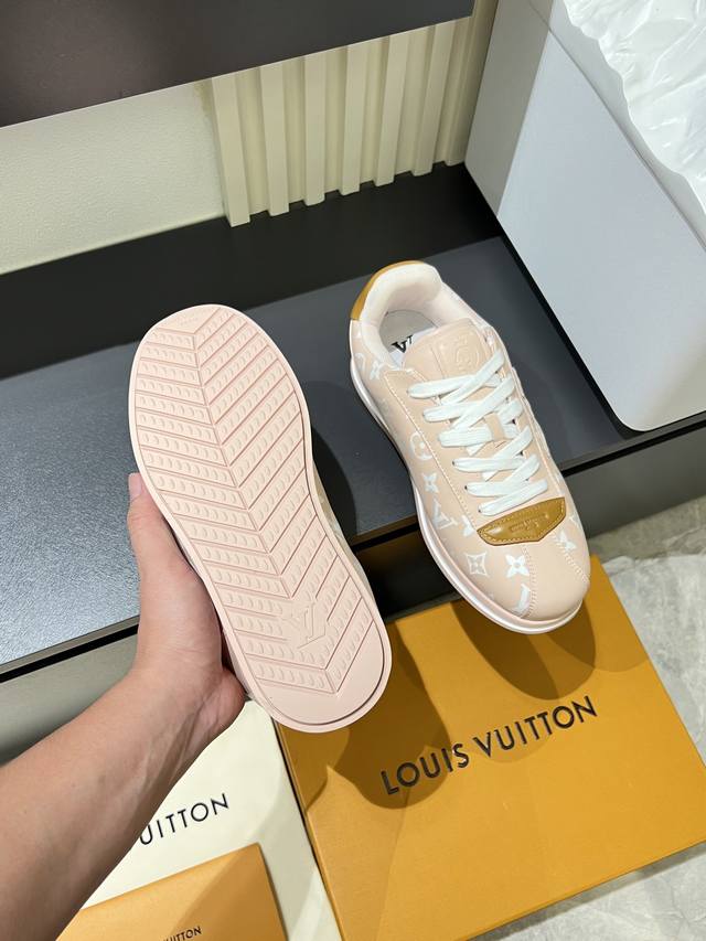 Louis Vuitton High-Quality Original Casual Sports Shoes. Upper: Nappa calfskin, printed brand logo, stitched brand modules on the shoe body, toe, tongue, and heel; air-pressed brand logo. Lining: Brand canvas. Outsole: Ultra-lightweight original TPU rubber foam; molded outsole with ultra-high quality control and exquisite workmanship, highlighting high-end luxury. Size: 39-44, 45, custom orders available.