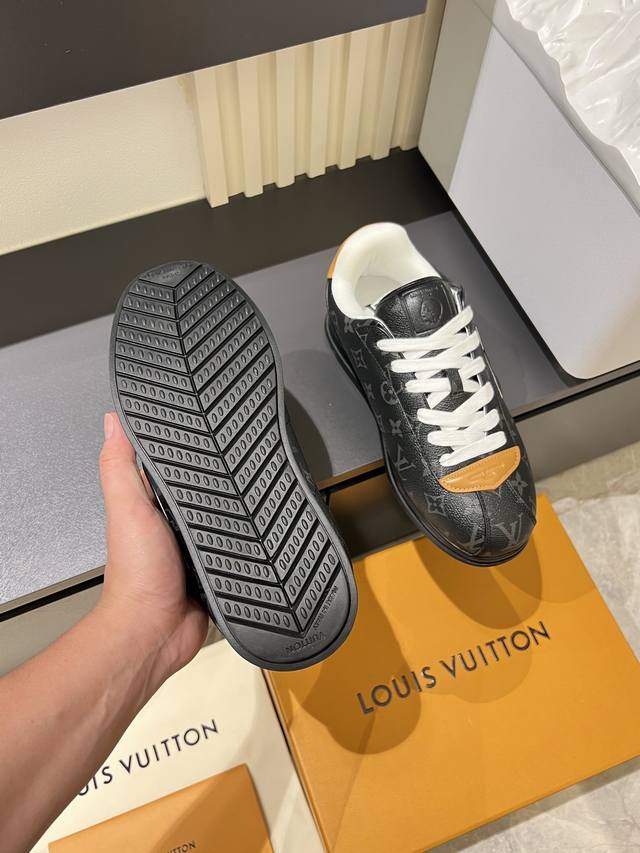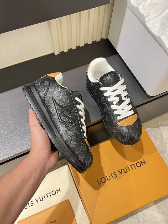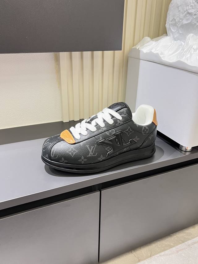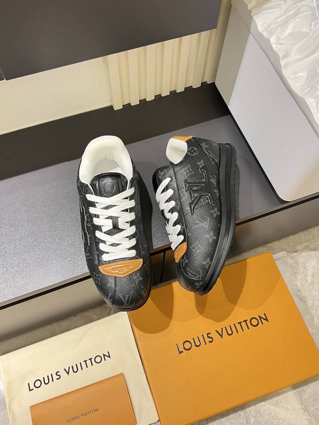 Louis Vuitton High-Quality Original Casual Sports Shoes. Upper: Nappa calfskin, printed brand logo, stitched brand modules on the shoe body, toe, tongue, and heel; air-pressed brand logo. Lining: Brand canvas. Outsole: Ultra-lightweight original TPU rubber foam; molded outsole with ultra-high quality control and exquisite workmanship, highlighting high-end luxury. Size: 39-44, 45, custom orders available.