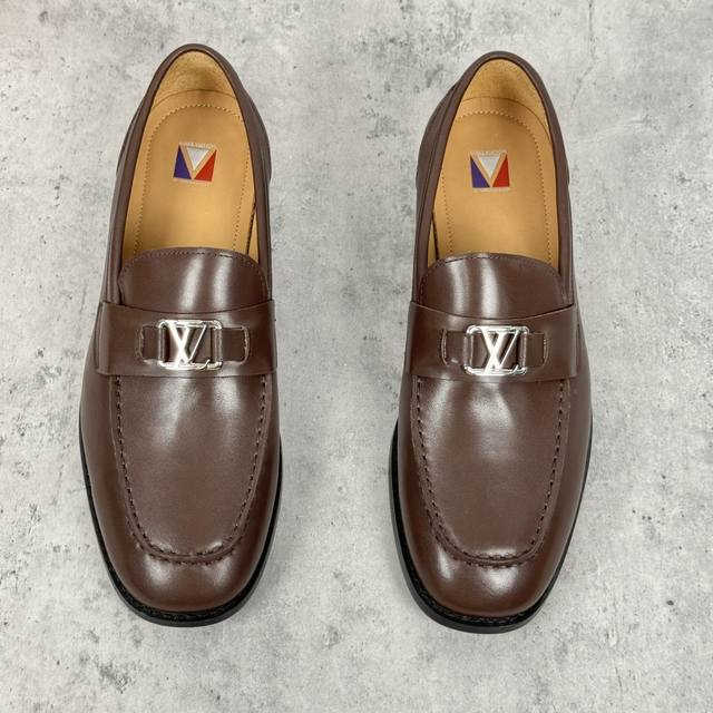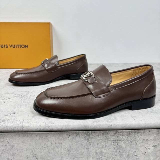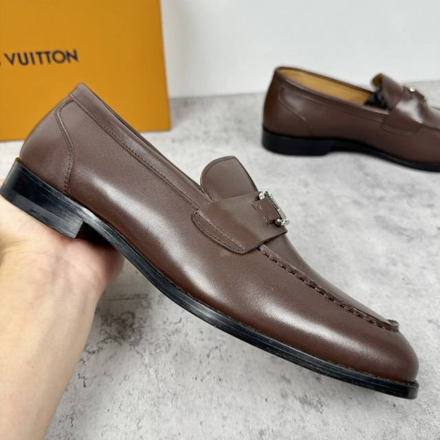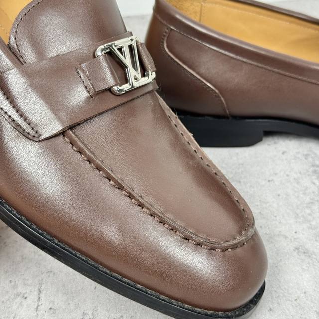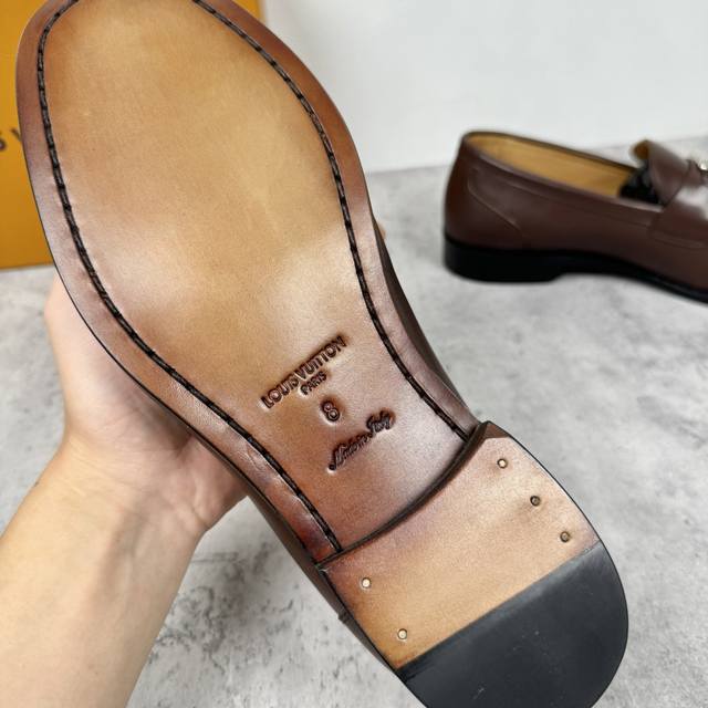 Louis Vuitton Lv Major series loafers for men are shipping! Imported fetal cowhide upper, genuine leather stitching and baked edge craftsmanship, high-end material fetal cowhide material, the leather is delicate and high-end, see the actual effect, the slip-on design is very easy to put on and take off, with a genuine leather buckle strap, and a copper buckle hardware Lv letter concentric lock badge logo, natural dyed calfskin lining, three-color logo badge details, genuine leather insole. The bottom layer is imported from Italy and the color is rubbed. The heel is matched with a rubber bottom plate, showing luxury and fashion. Full set of packaging and heavy craftsmanship, leather material, workmanship and craftsmanship are seen in the details. If you pursue high quality, please take a look!